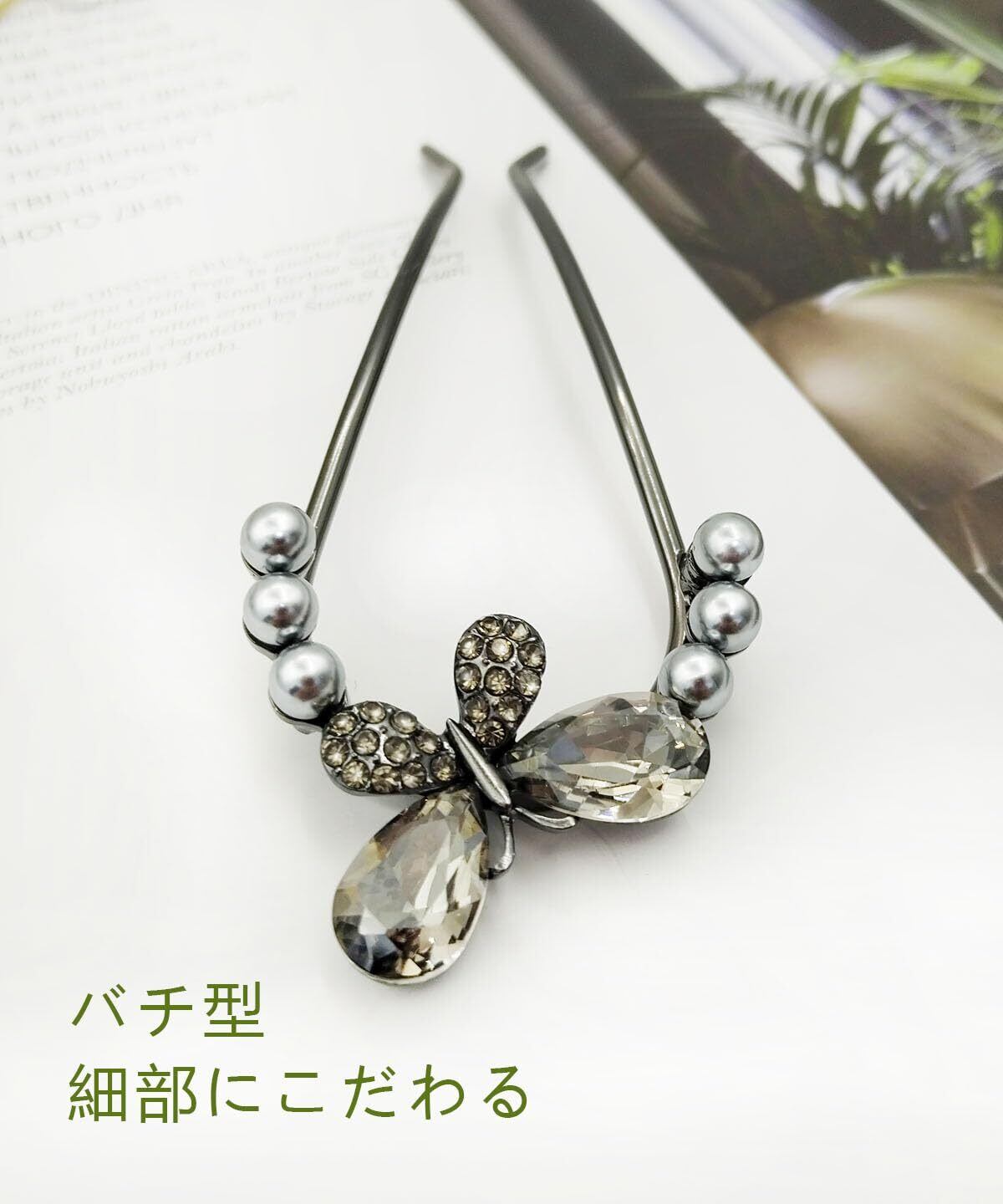 かんざし 髪飾り 留袖 二本挿し バチ型 二本挿し 簪 和装 Uピン パール 結婚式 振袖 まとめ髪 レディース