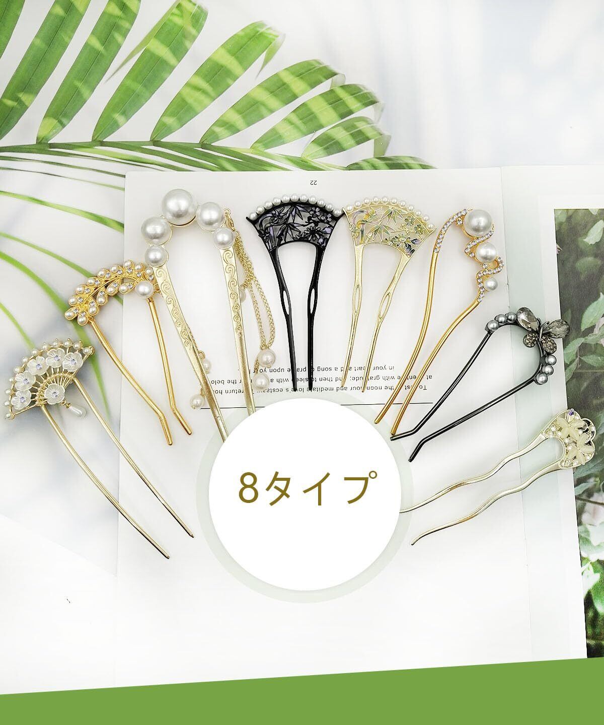 二本挿し、バチ型で髪に挿すだけ、髪の毛力少なくて、長さも短いまとめ髪にも刺さることができます。