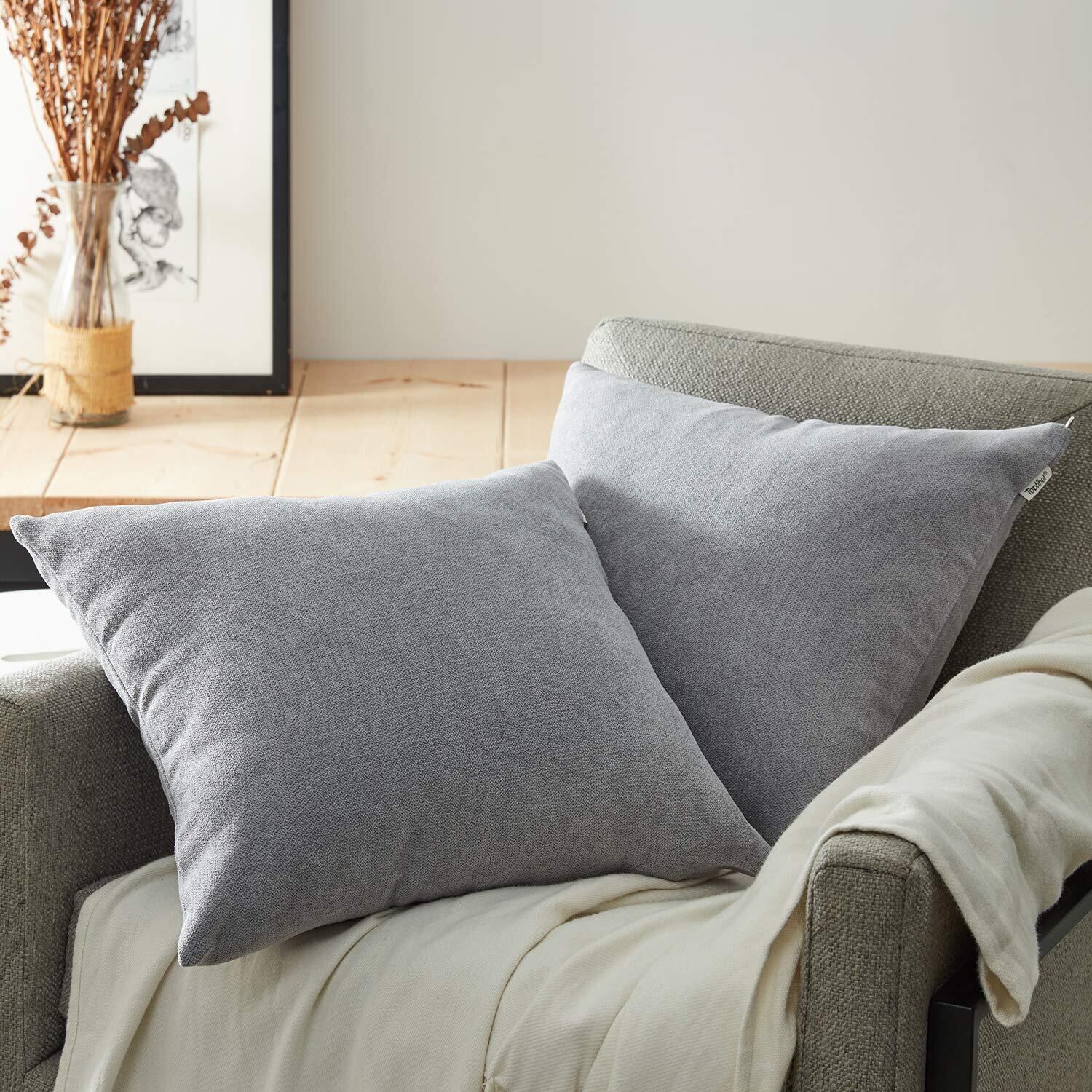 【2022最新】クッションカバー リネンっぽい 45×45cm 北欧 おしゃれ 綿麻 無地 ソファ背当て 装飾枕カバー 座布団カバー グレー 2枚セット(全10色)