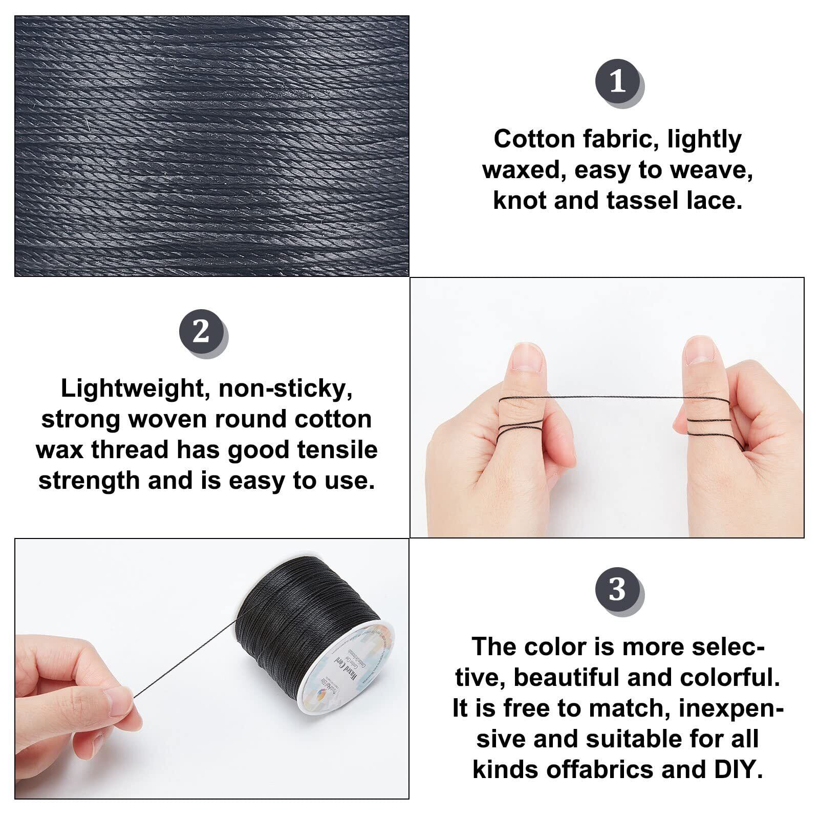 PH PandaHall 約106m/巻き ポリエステル製 蝋引き紐 直径0.5mm ロウ引き糸 ワックスコード 手縫い 糸 アクセサリー用糸 レザークラフト マクラメ DIY 手芸用品 ジュエリー用 アクセサリーパーツ 手作り素材 ブラック