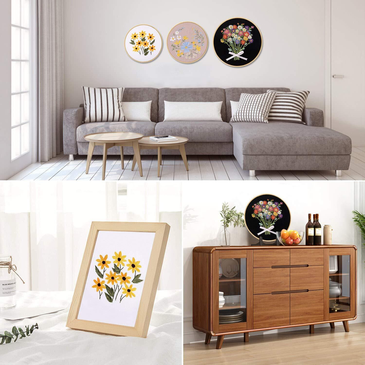 mefeny 刺繍キット 刺しゅう 初心者 パターンあり 英語と日本語ステッチ方説明書付き 3セット 竹製刺繍枠3本15CM/18CM/20CM 刺繍糸 刺繍針6本 刺繍布3枚 ハサミ1本 初心者学ぶ 花