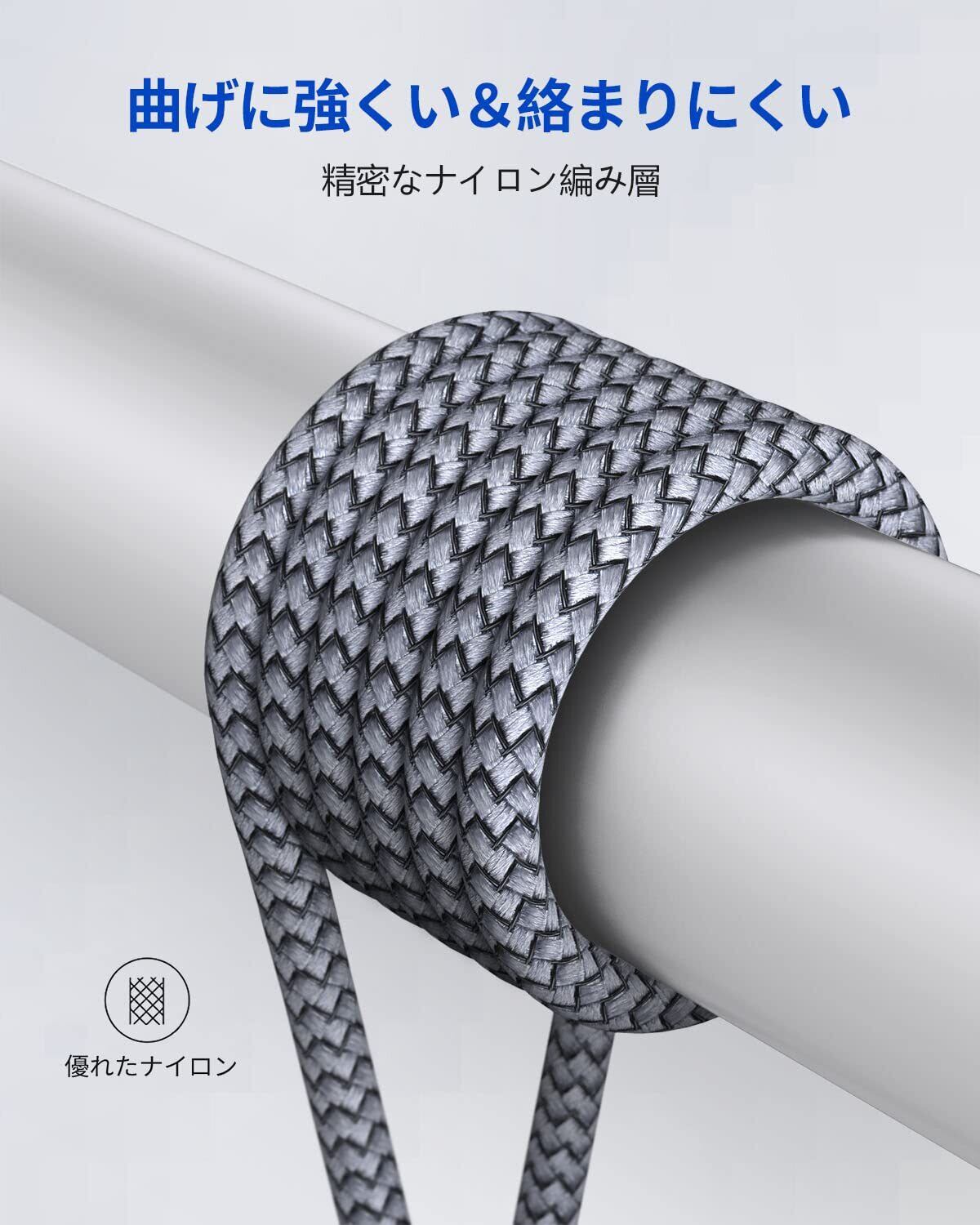 【驚きさの高耐久性】曲げに強くて、絡まりにくさを兼ね備えるの優れたナイロン編みType C ケーブルは、35000回の厳しい折り曲げ試験と5000回の抜き挿し試験に合格した。一般的なUSBケーブルより寿命を4倍以上に向上する高耐久USBC 充電ケーブルです。