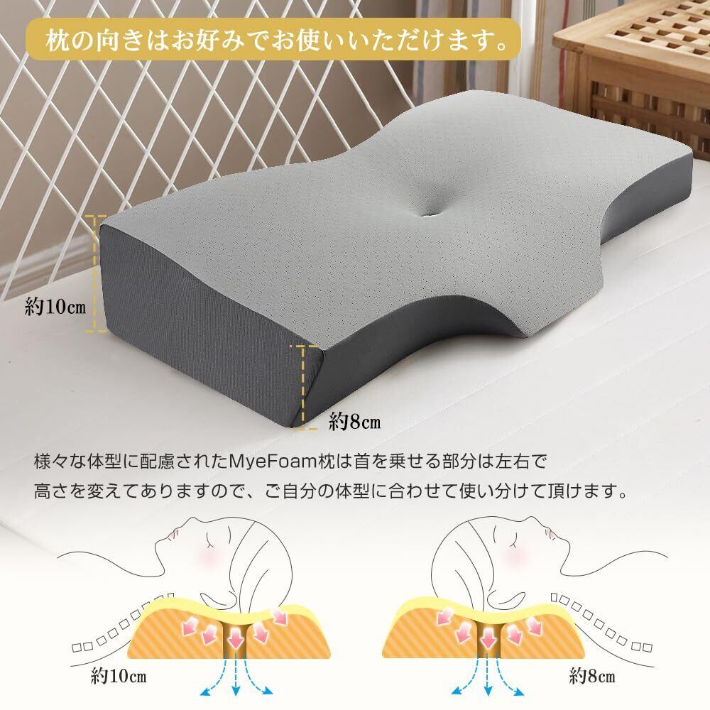 【仰向き 横向きでもラク、高さ調整可能】仰向けで寝る場合、中空設計+くぼみ形状により、頭部への圧力をかからず、寝姿勢を安定。 横向けで寝る場合、中空設計で横向き寝の際の側頭部や耳のあっぱく感を感じない。 様々な体型に配慮されたMyeFoam枕は首を乗せる部分は左右で高さを変えてありますので、ご自分の体型に合わせて使い分けて頂けます。