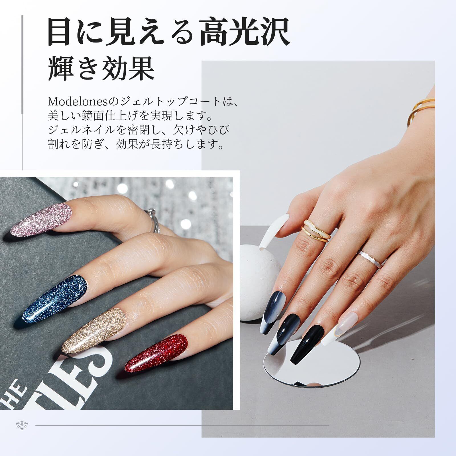【数量限定】MODELONES ジェルネイル トップコート 10ml 2本セット ノンワイプ 拭き取り不要 大容量 UV/LED対応 速乾 長持ち、Top Coat 最上級の艶 ポリッシュ ネイルジェル
