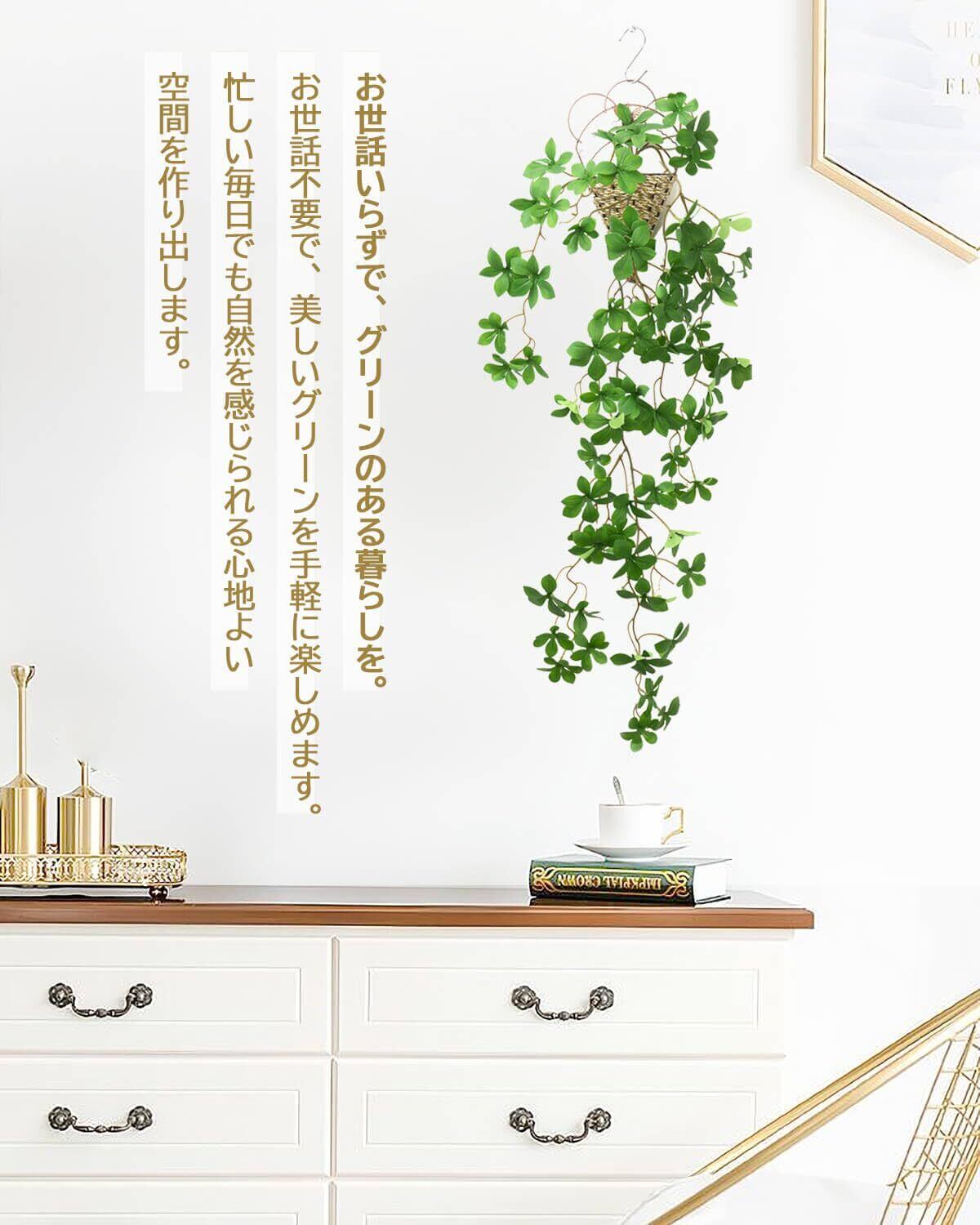 フェイクグリーン 吊り下げ 壁掛け セット【オシャレなバスケット付き】全長約86cm 観葉植物 ドウダンツツジ フェイク 軽量 ギフト 向け