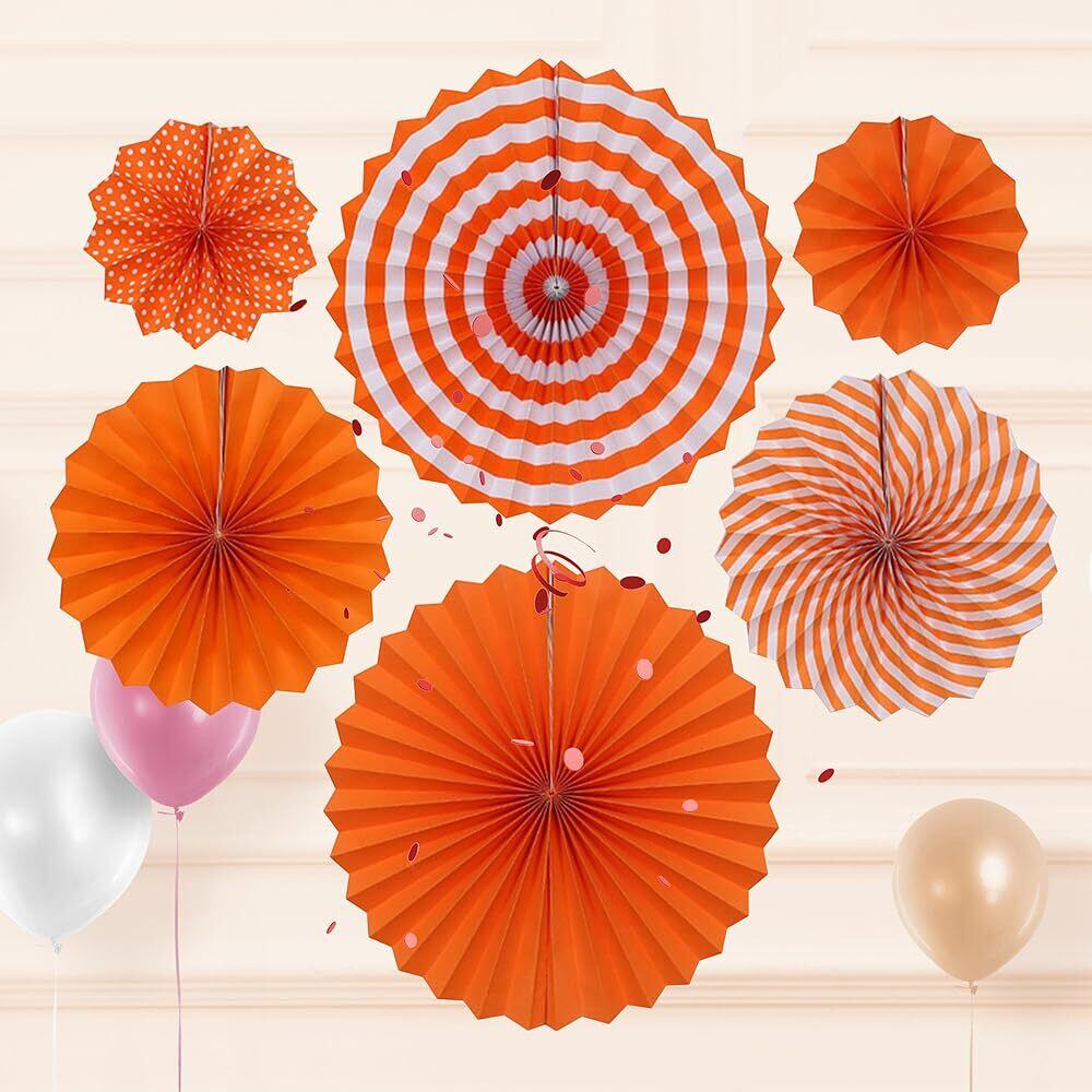 LIANHATA ペーパーファン 6個セット パーティー 装飾 3サイズ 扇子の組み合わせ デコレーション 記念日 バレンタイン 結婚式 お祝い お部屋の飾り つけ (オレンジ)