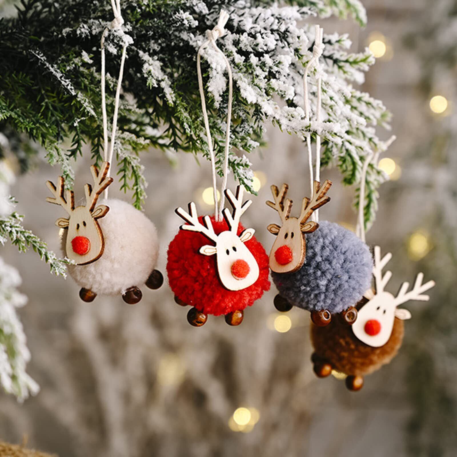 【クリスマスオーナメント】クリスマスツリーオーナメント4個セットです。愛らしいふわふわのトナカイのデザインで、暖かい雰囲気を演出します。鮮やかな色はクリスマスの雰囲気にぴったりです。