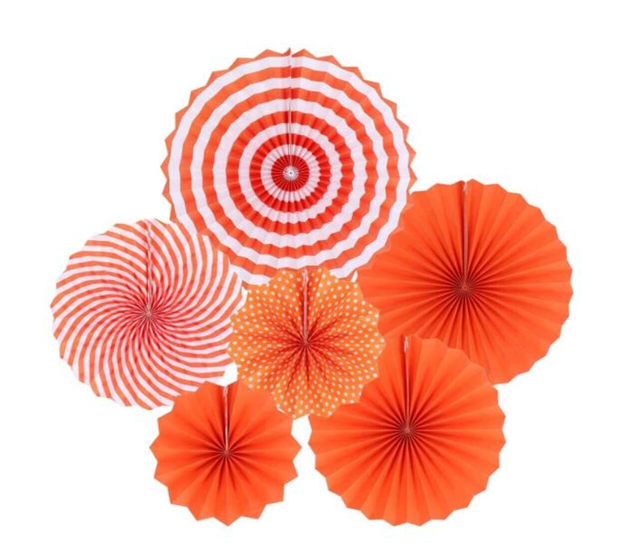ペーパーファン パーティー 装飾 女の子 誕生日 結婚式 (6点セット)扇子の組み合わせ バレンタイン お祝い 飾り お部屋の飾 男の子 誕生日飾り付けセットベビーシャワー 撮影 写真背景 (オレンジ)
