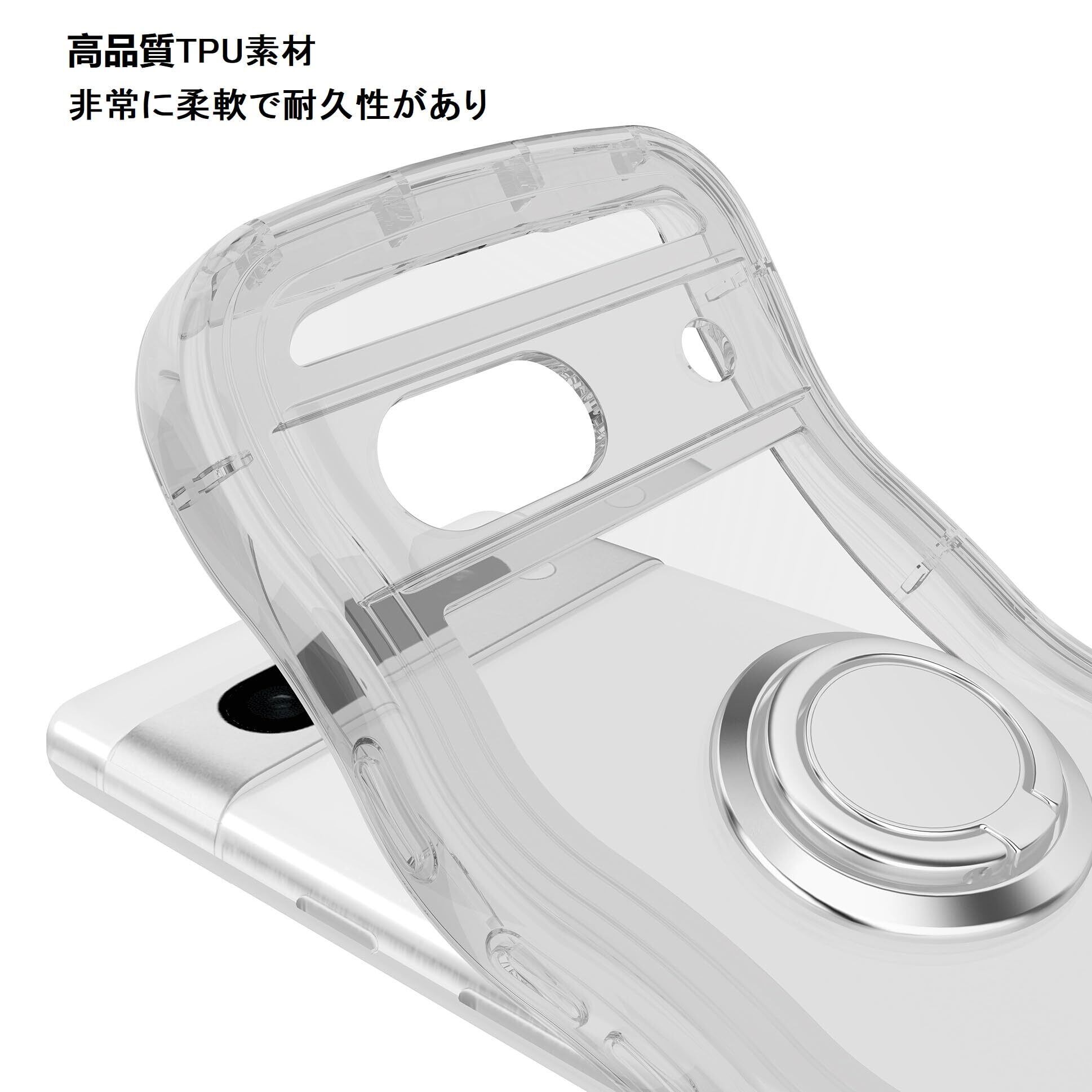 Google Pixel 7A用ケースクリア リング付き グーグルピクセル 7aウェーブ 純透明 携帯ケース マグセフ 可愛い ケース [シルバーリングスタンド付き!]マツと感 TPU 耐衝撃 超軽量 極薄 透明 黄ばみなし 滑り止め スマホケース pixel7aかわいいうねうね 韓国 人気 ワイヤレス充電対応 ストラップホール付きなみなみ カバー・ピクセル 7Aクリア