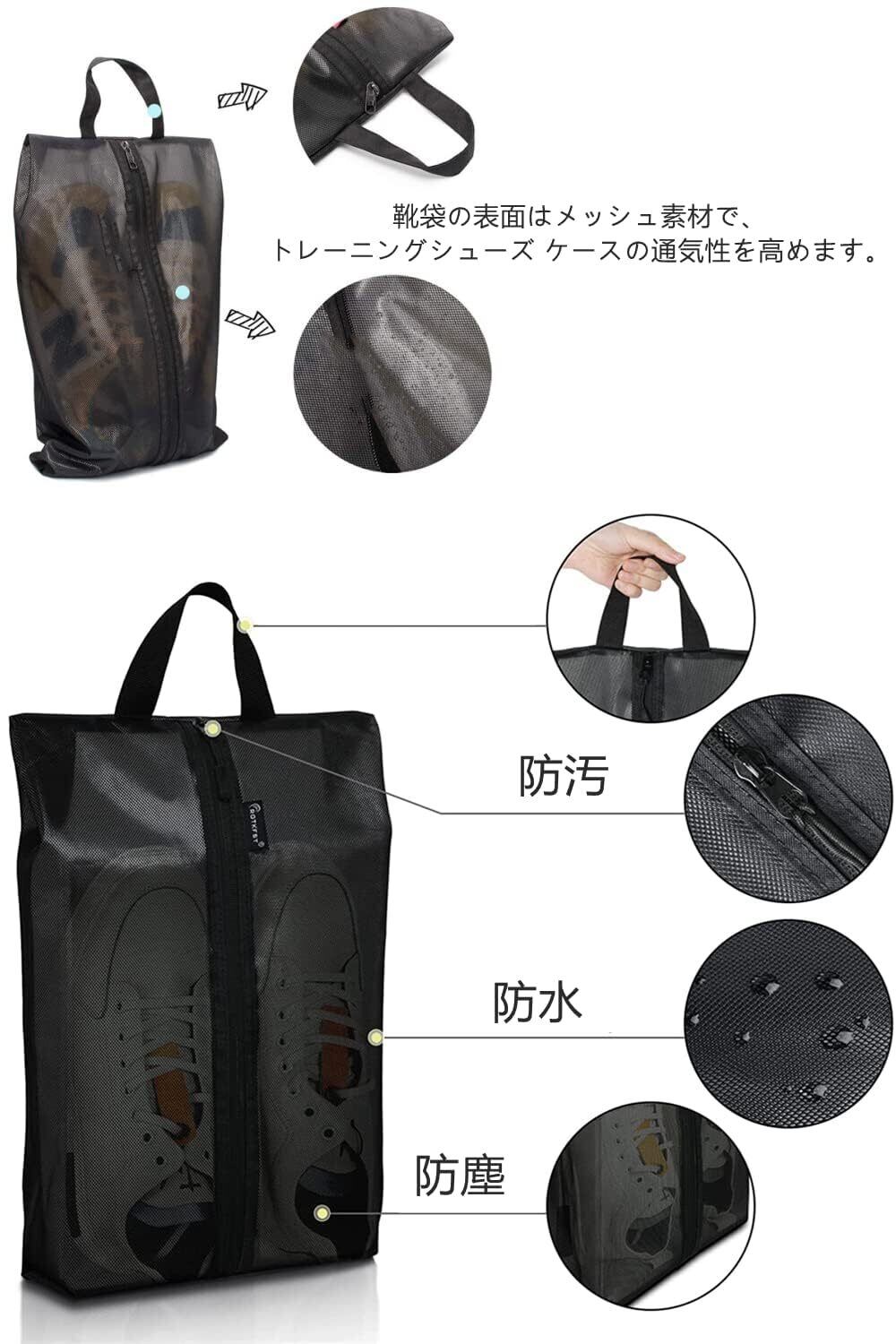【防水・防塵・防汚】:靴袋の表面はメッシュ素材で、トレーニングシューズ ケースの通気性を高めます。 高品質の素材を採用して、 汚れに強く、防水機能も優れております。防水防汚で、水洗い可能で、いつも清潔にお使いいただけます。耐久性をするとともに柔軟性を兼ね備えています。家でも外出用でも便利に使用できます。