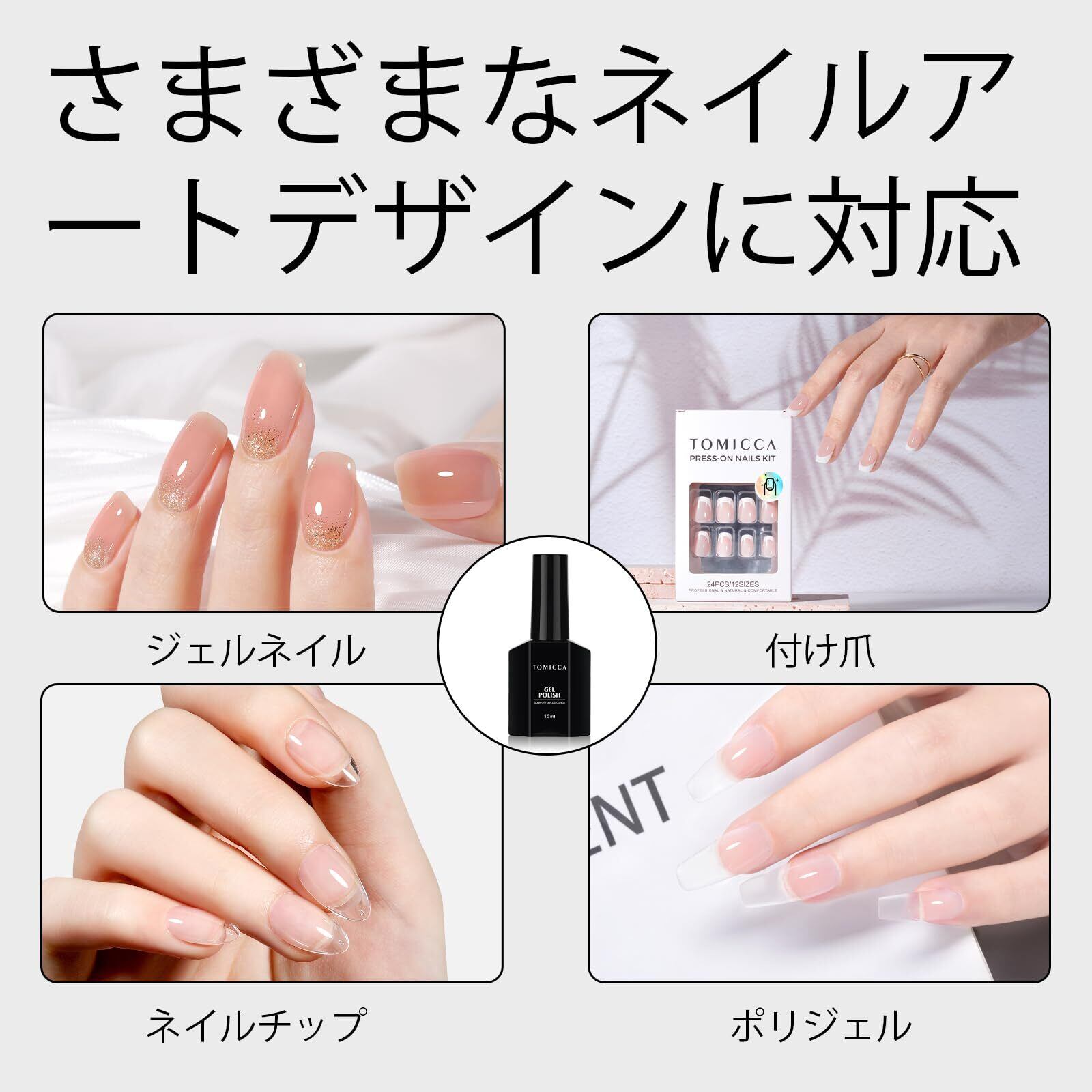 TOMICCA剥がせるベースジェルは無臭であり天然樹脂,刺激臭がない,9つの有害物質を含まず、ビーガンでクルエルティフリーで、快適なマニキュア体験を提供します。剥がせるジェルネイル ベースを使用すると、リムーバー不要。