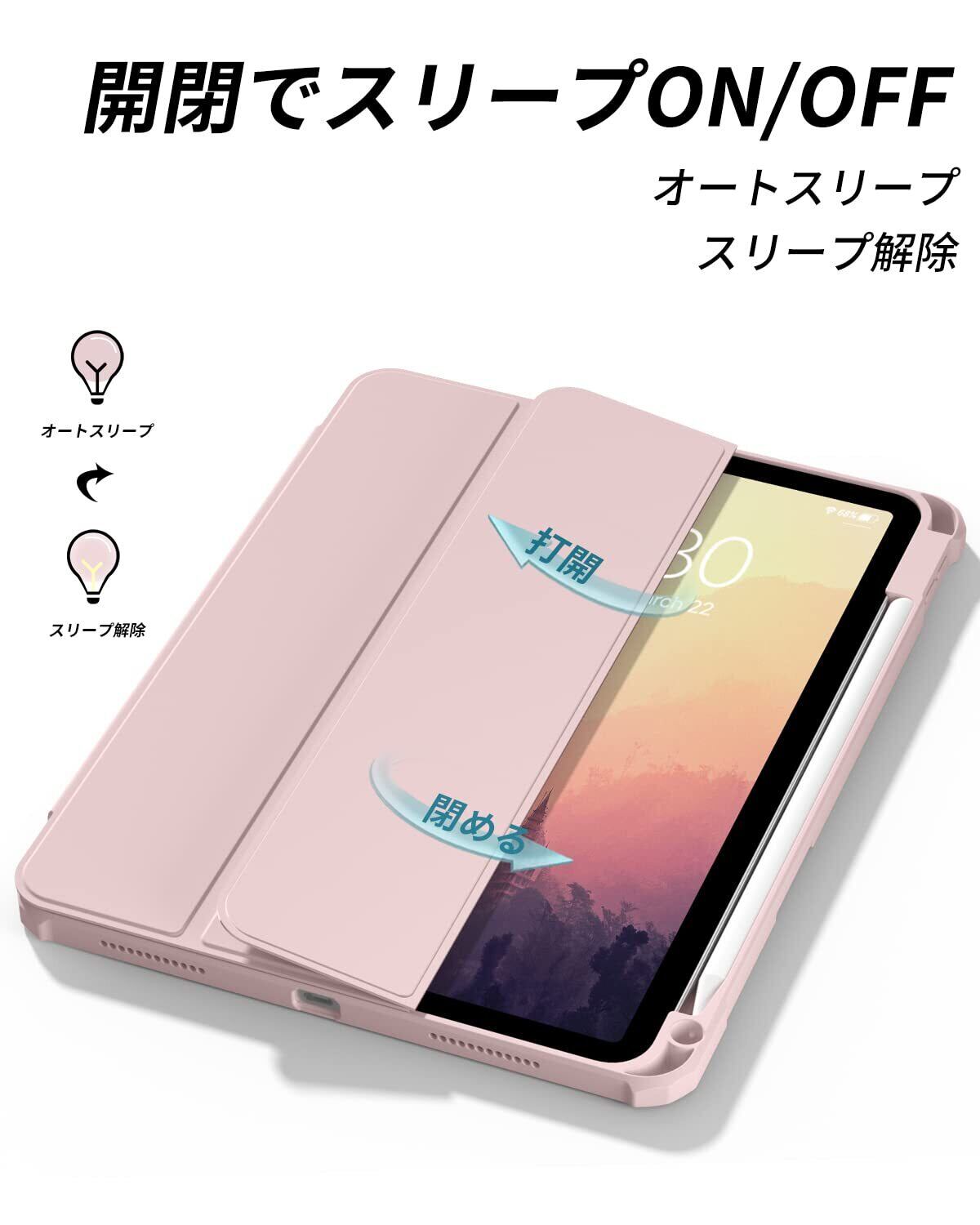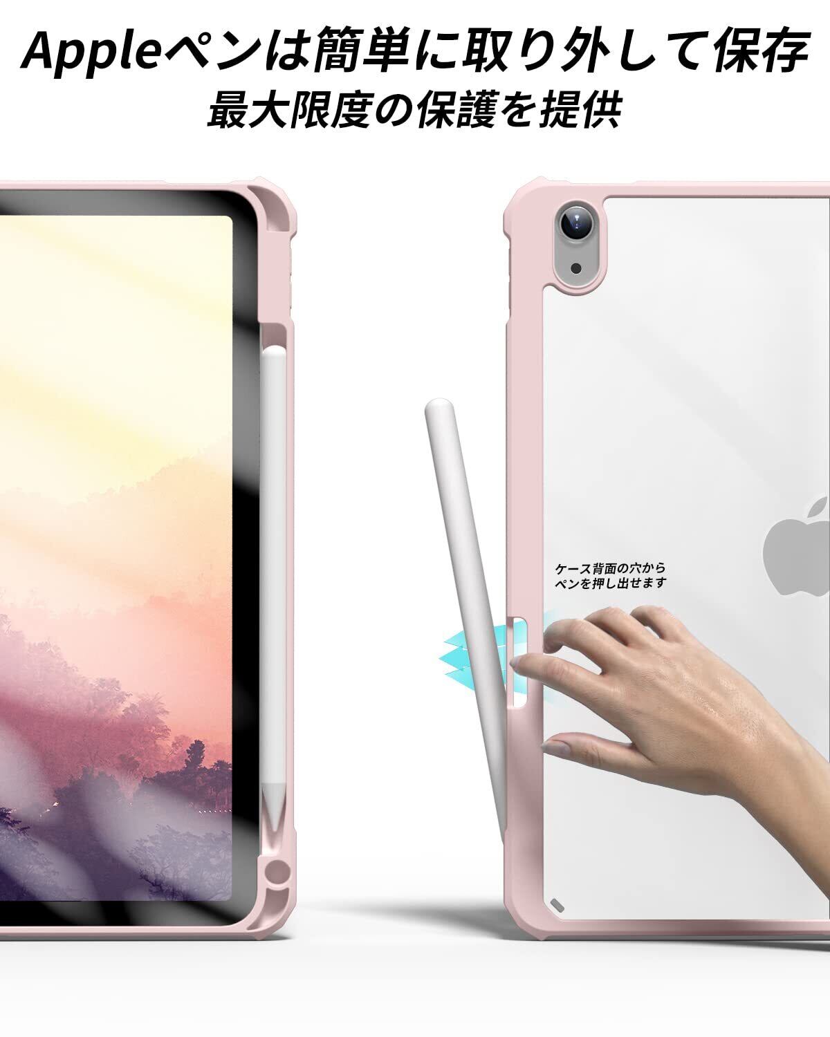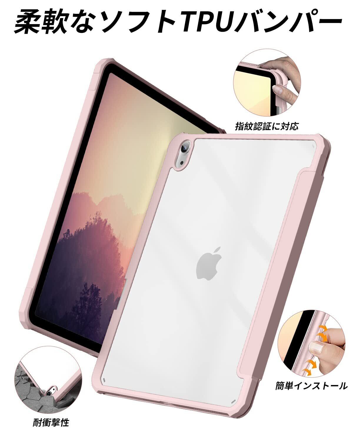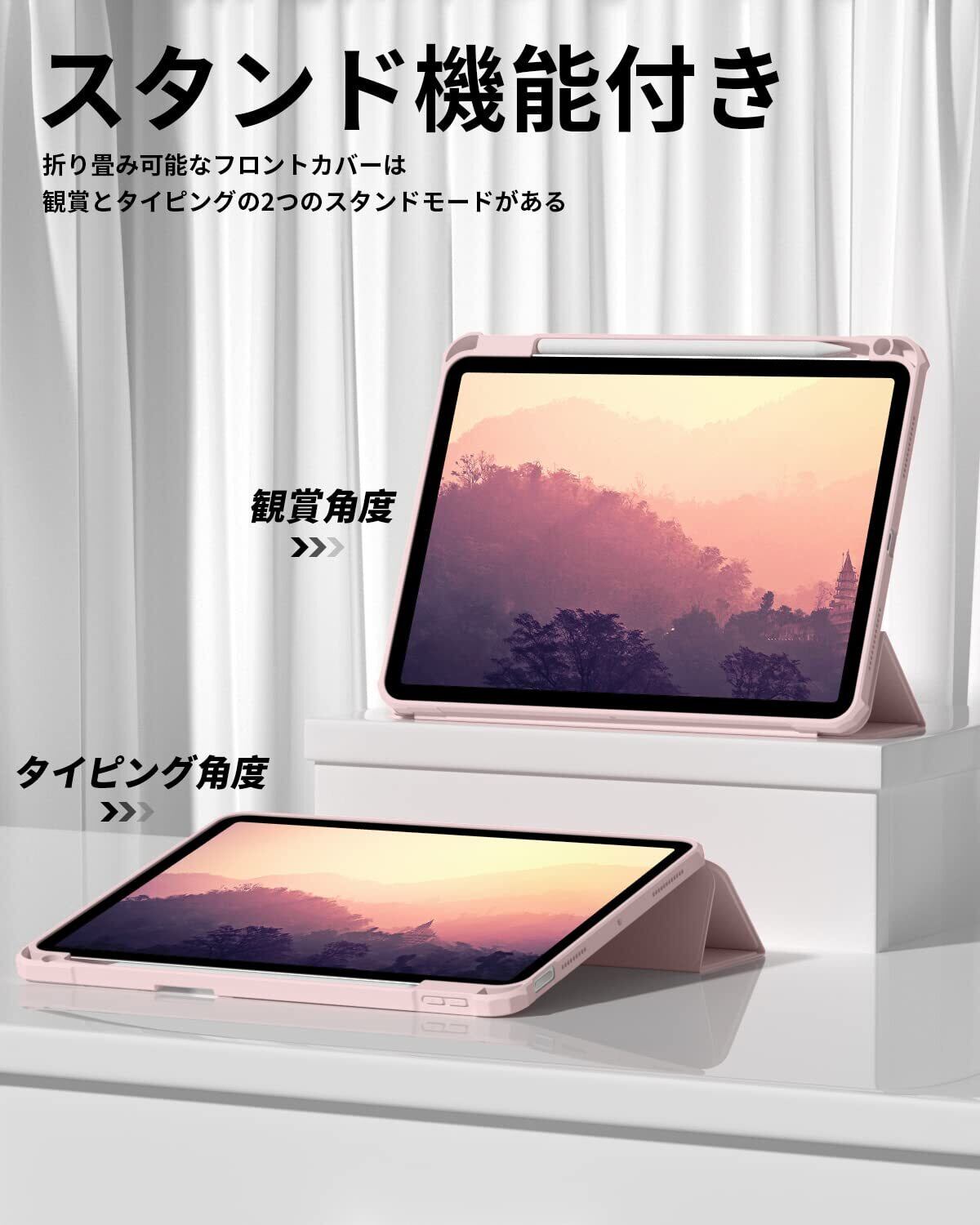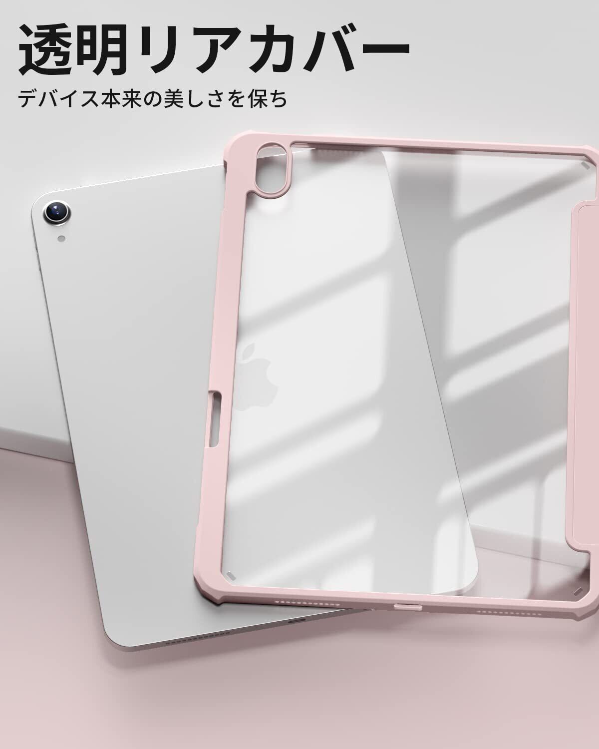 iPad Air 11インチ ケース (M3/M2、2025/2024) iPad Air 第5/4世代 2022/2020 10.9インチ iPad air ケース 透明バックカバー Pencil収納可能 ワイヤレス充電対応 三つ折スタンド スリープ機能 軽量 薄型 傷つけ防止 PU合成レザー TPU ピンク
