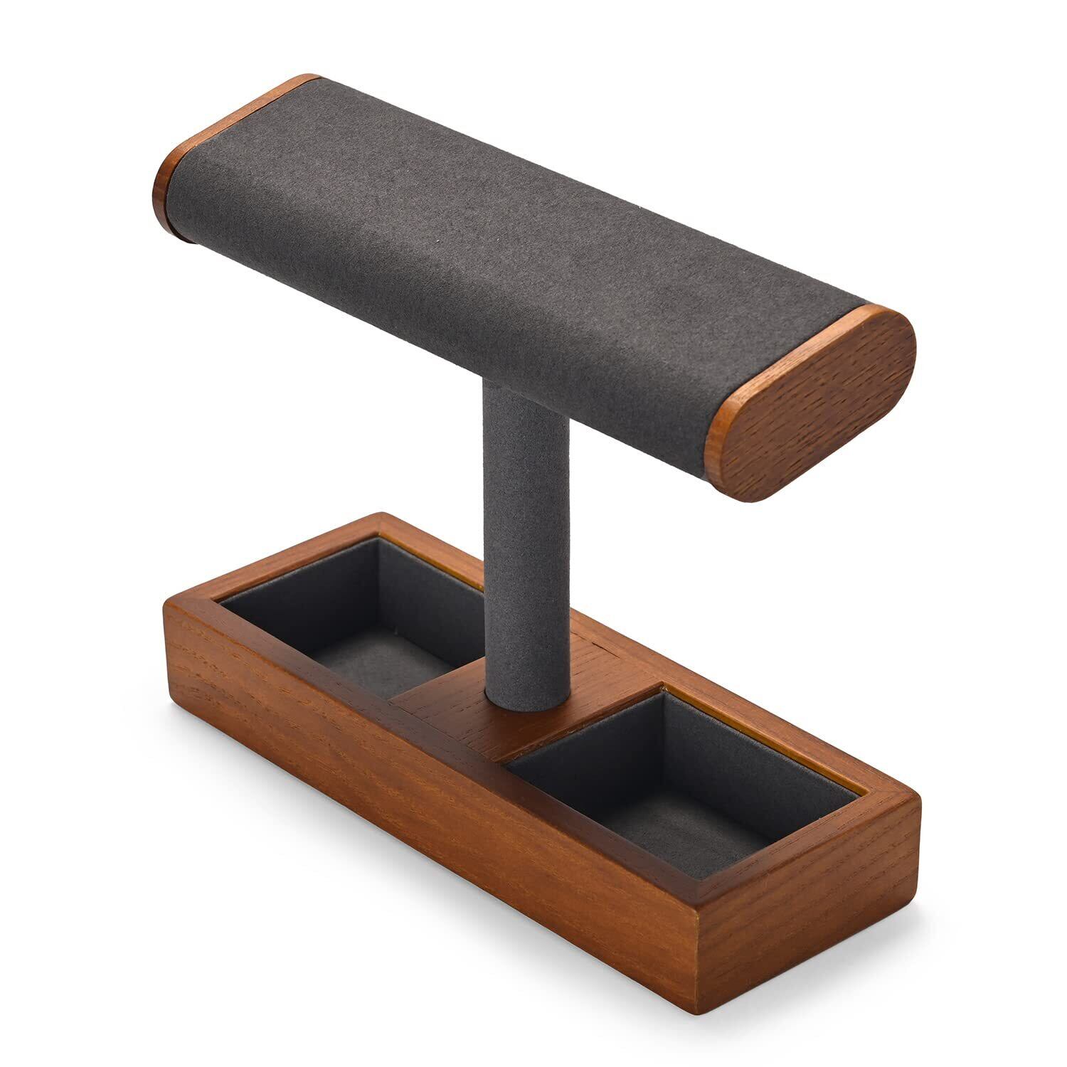 【特価商品】天然木製 時計スタンド ダークグレー超纤内張り 収納付き シックなインテリア ウォッチスタ