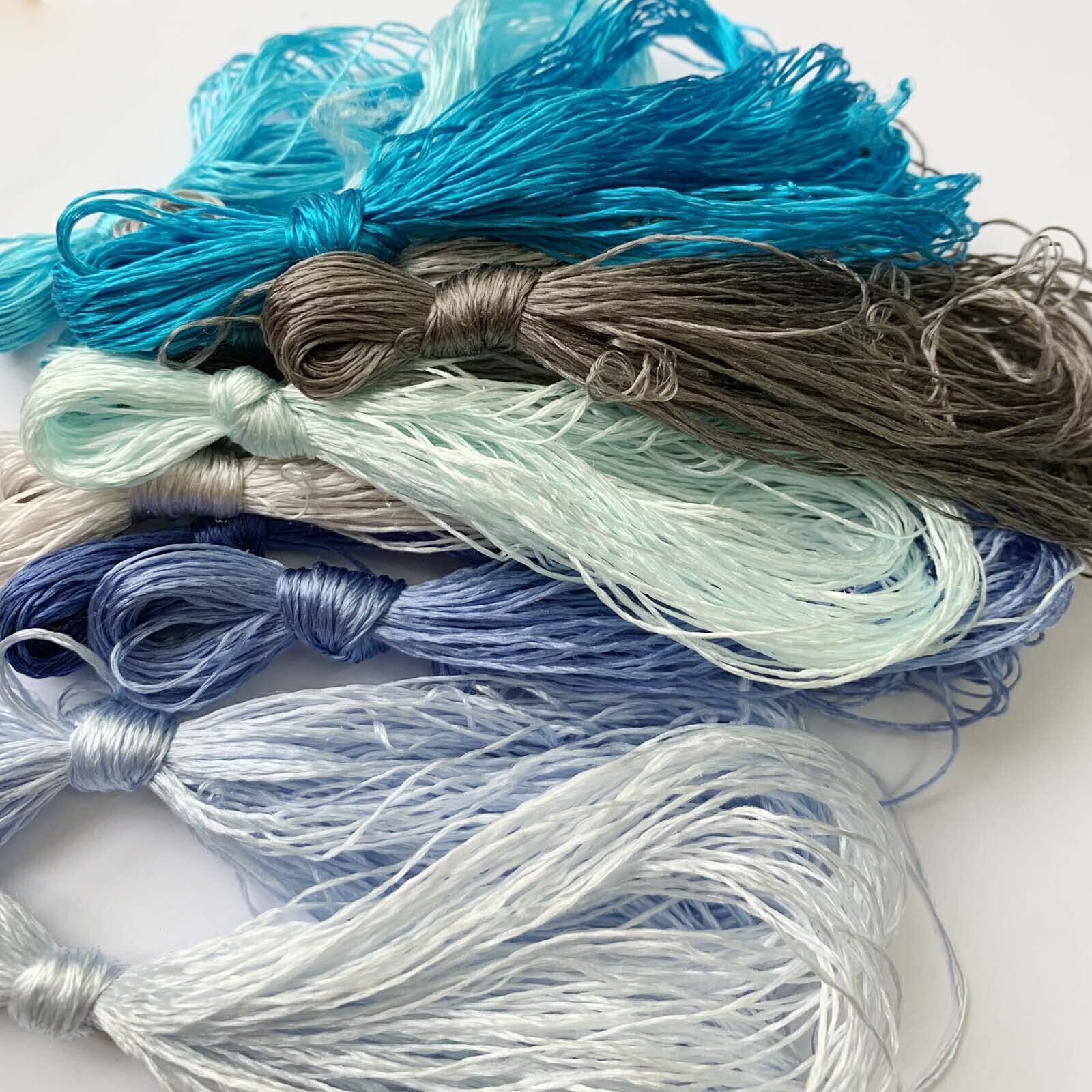 12本 絹糸 光沢きれい 刺しゅう糸 ソーイング糸 手縫い糸 12色 カラー糸 セット 20M/色 計240M (ブルー)