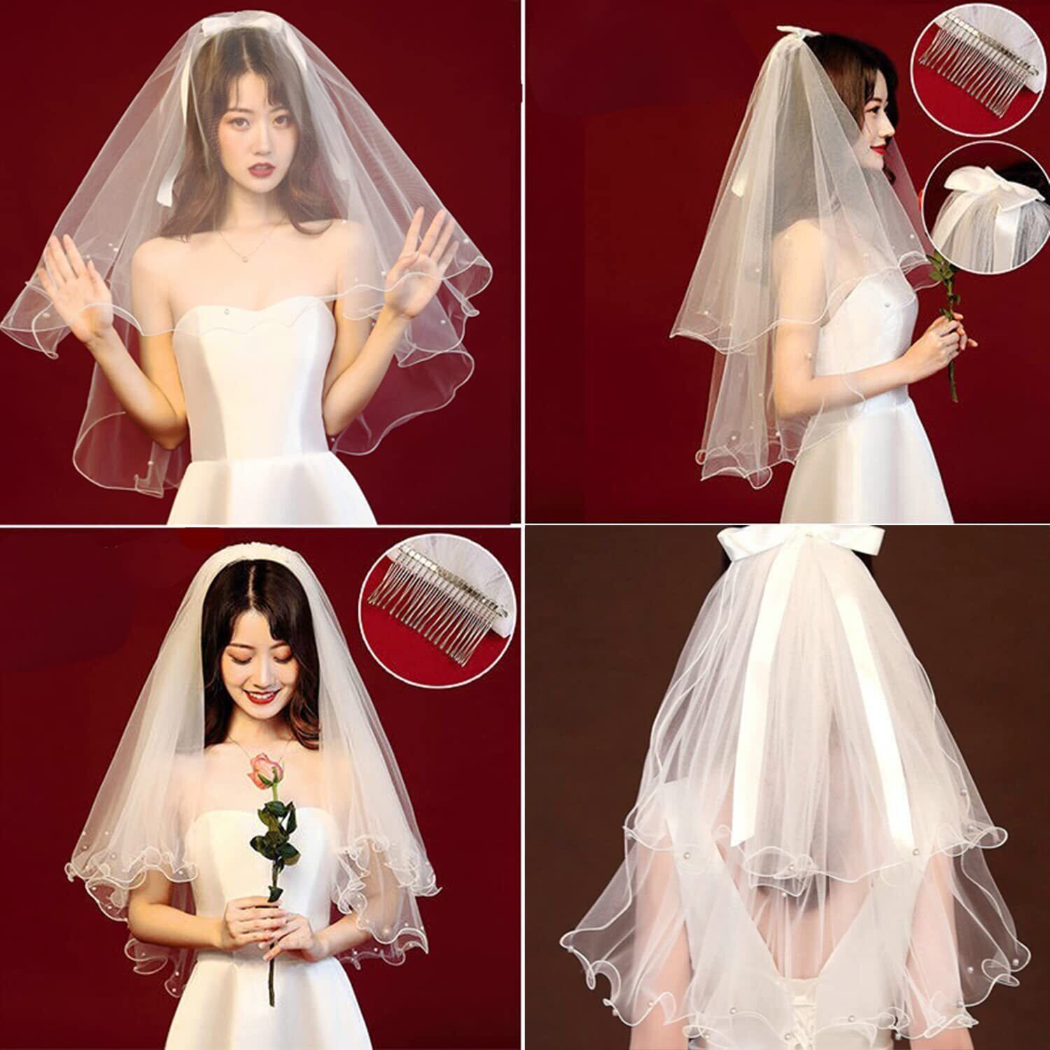 【ユニークなデザイン】この短いベールには、絶妙な白い人工真珠が点在し、暗黙のロマンス、ユニークな波状のエッジ、手作りの白い弓がいくつかの素敵な機能を追加し、フェミニンなファッションベール、あなたが最も美しい花嫁、最も美しいになることができます王女。 柔らかな白、控えめでエレガントな純粋なデザイン、シックな結婚式のベールはあなたの結婚式のための優れた装飾です。