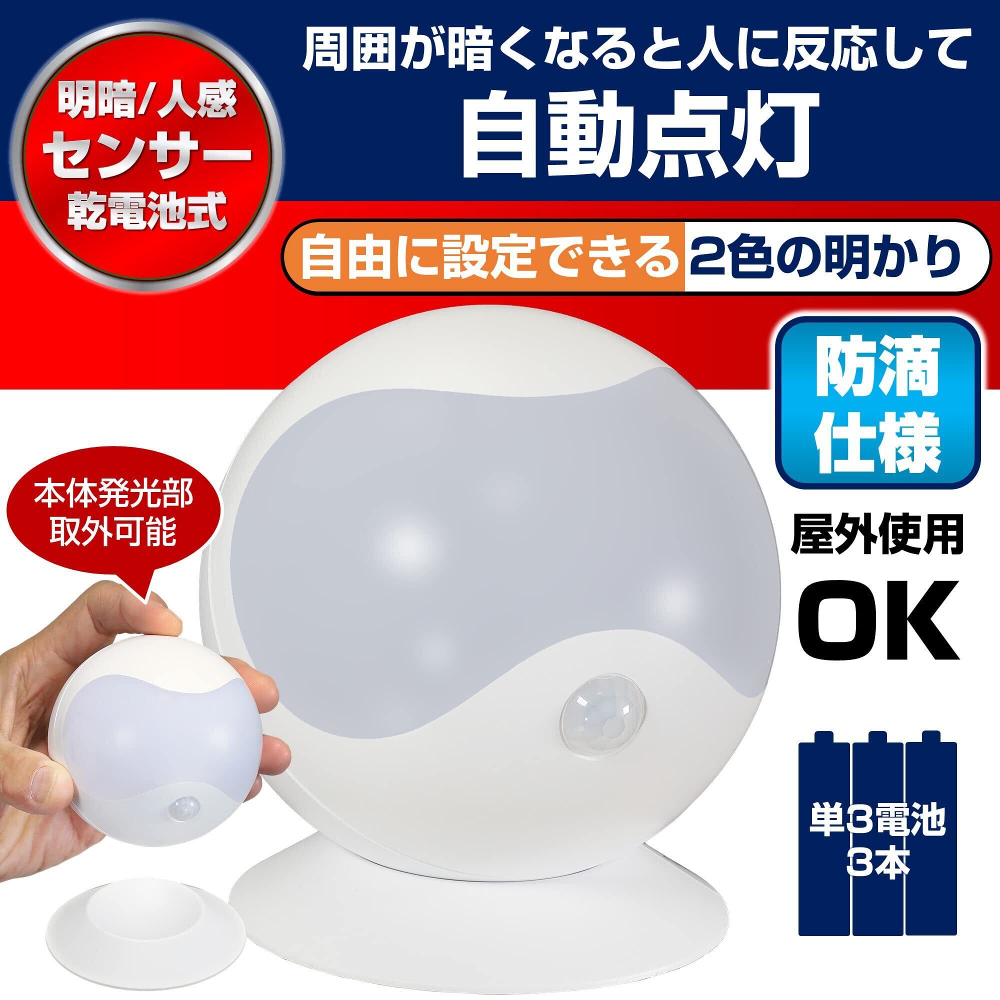 エルパ (ELPA) LEDセンサー付ライト (白色・電球色/電池式/防雨) 人感センサー/球型/マグネット/ネジ止め可能 (PM-L750W)