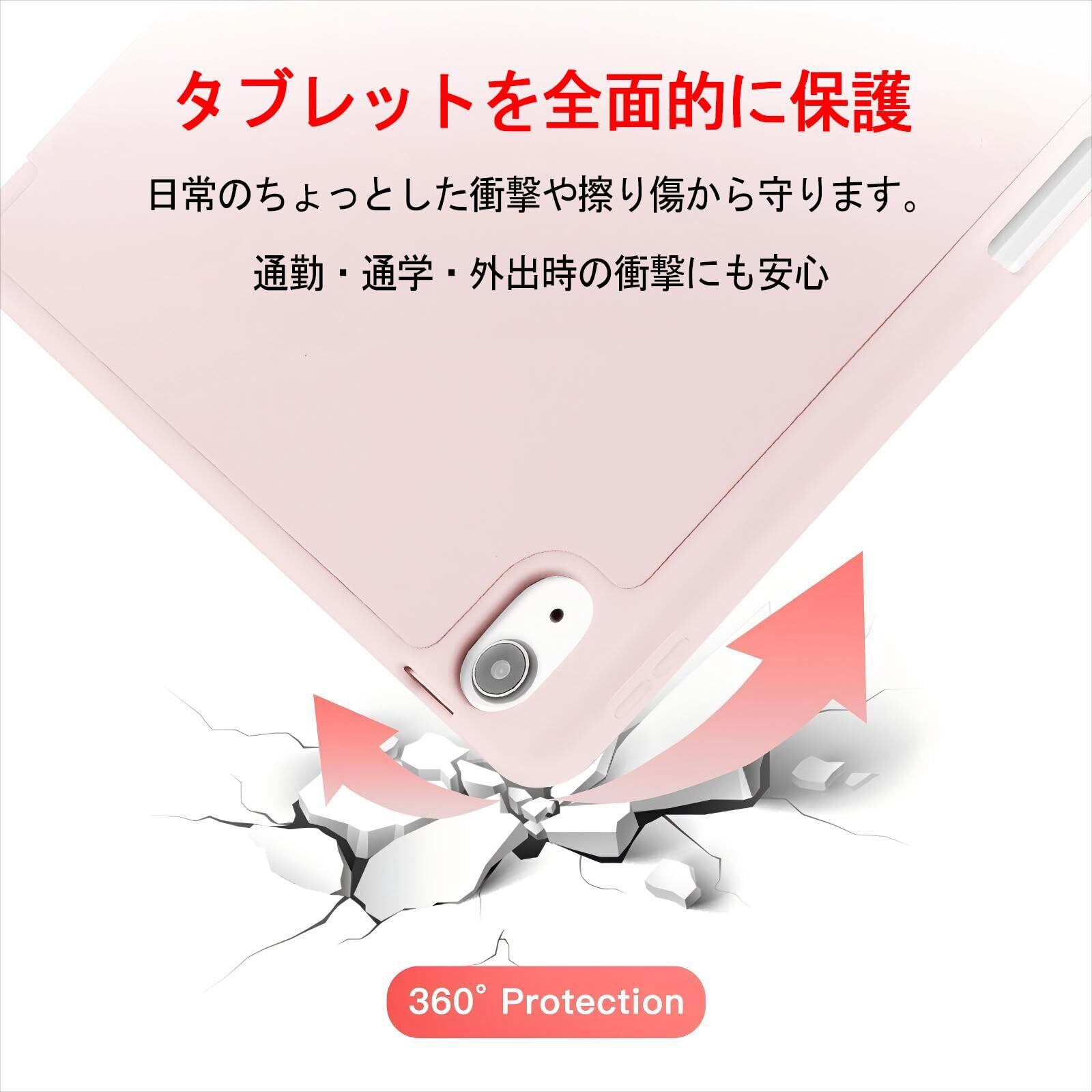 【特価商品】iPad Air 11 インチ ケース M3/M2 2025/2024 iPad Air 第5/4世代 カバー 2022/2020年 10.9インチ Pencil Proペン収納 Apple Pencil2 ワイヤレス充電対応 オートスリープ/ウェイク機能対応 ソフト TPU 薄型 軽量 耐衝撃 三つ折りスタンド(ホワイトグレー) (ピンク)