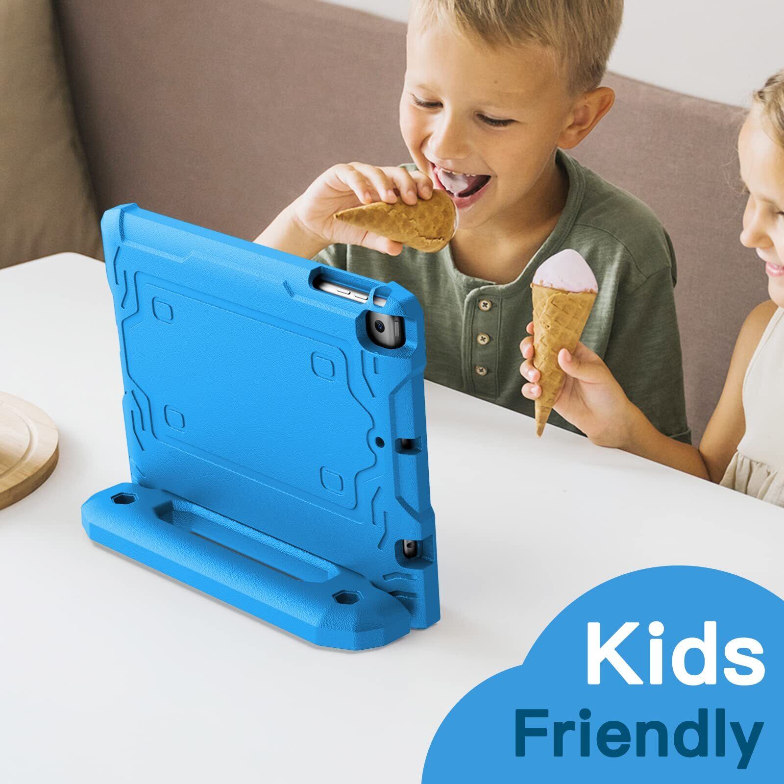 JEDirect 子供用 iPad 9.7インチ ケース (第6/5世代、2018/2017モデル) 液晶保護フィルム付き 耐衝撃 フルボディハンドルスタンド タブレット保護カバー (ブルー)
