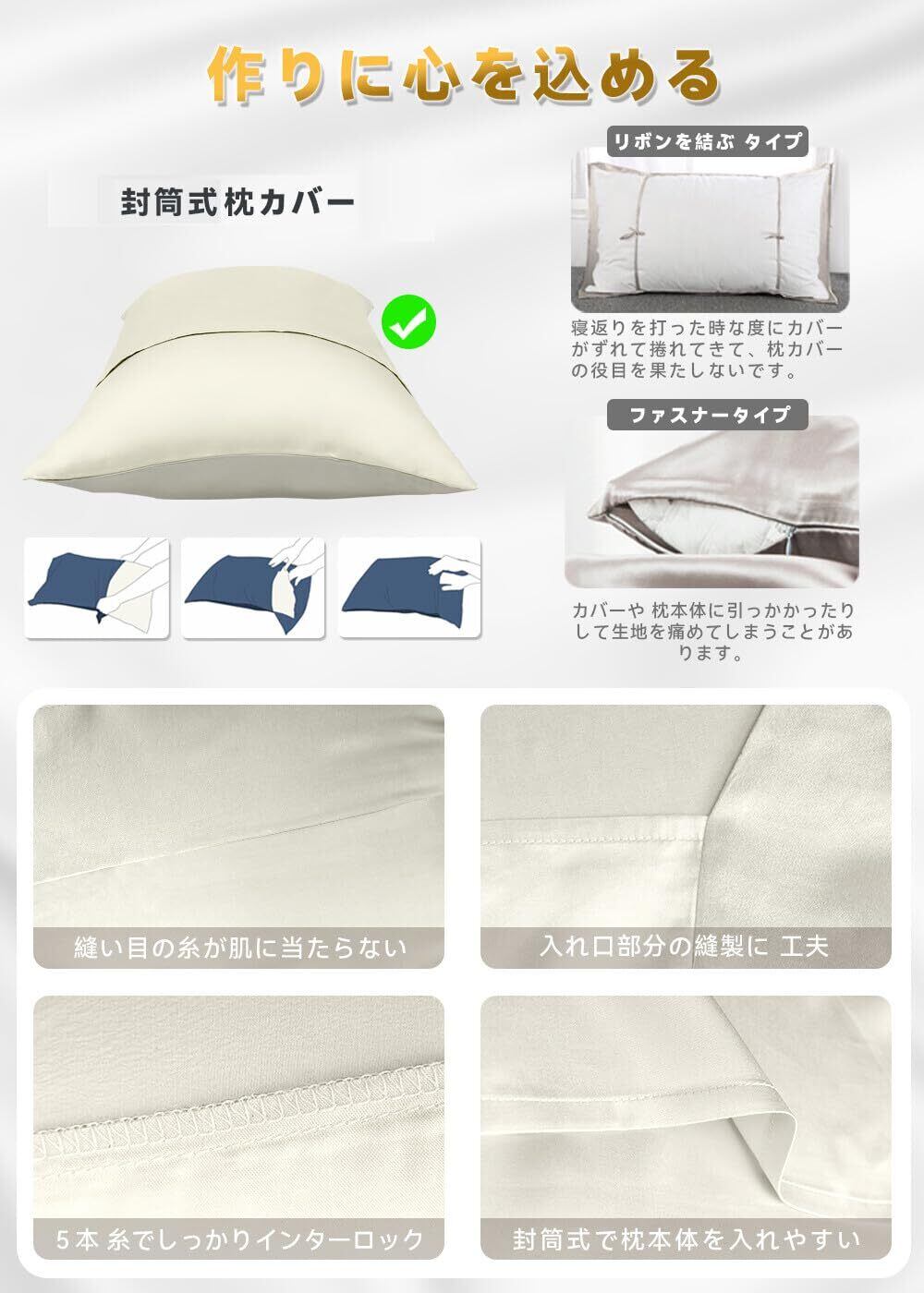 【新着商品】ottosvo 枕カバー 両面サテン 22匁 封筒式枕カバー 洗える サテンまくらカバー 良い通気性 うるつや髪 美髪 肌に優しい 摩擦軽減 防ダニ 抗菌防臭 サラサラ 四季適応 贈り物 プレゼント最適 ピローケース 2枚セット(43x63cm シャンパン) | allstore2