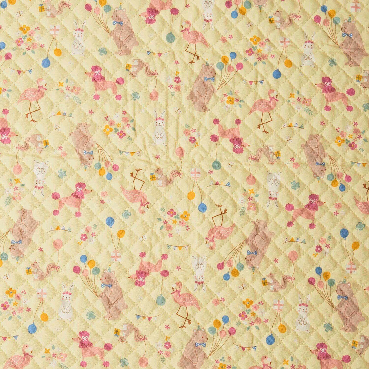 【数量限定】清原(KIYOHARA) キルティング 生地 女の子 撥水 105cm巾×50cmカット 動物 #6B クリーム レッスンバッグのレシピ付き TY77K-50