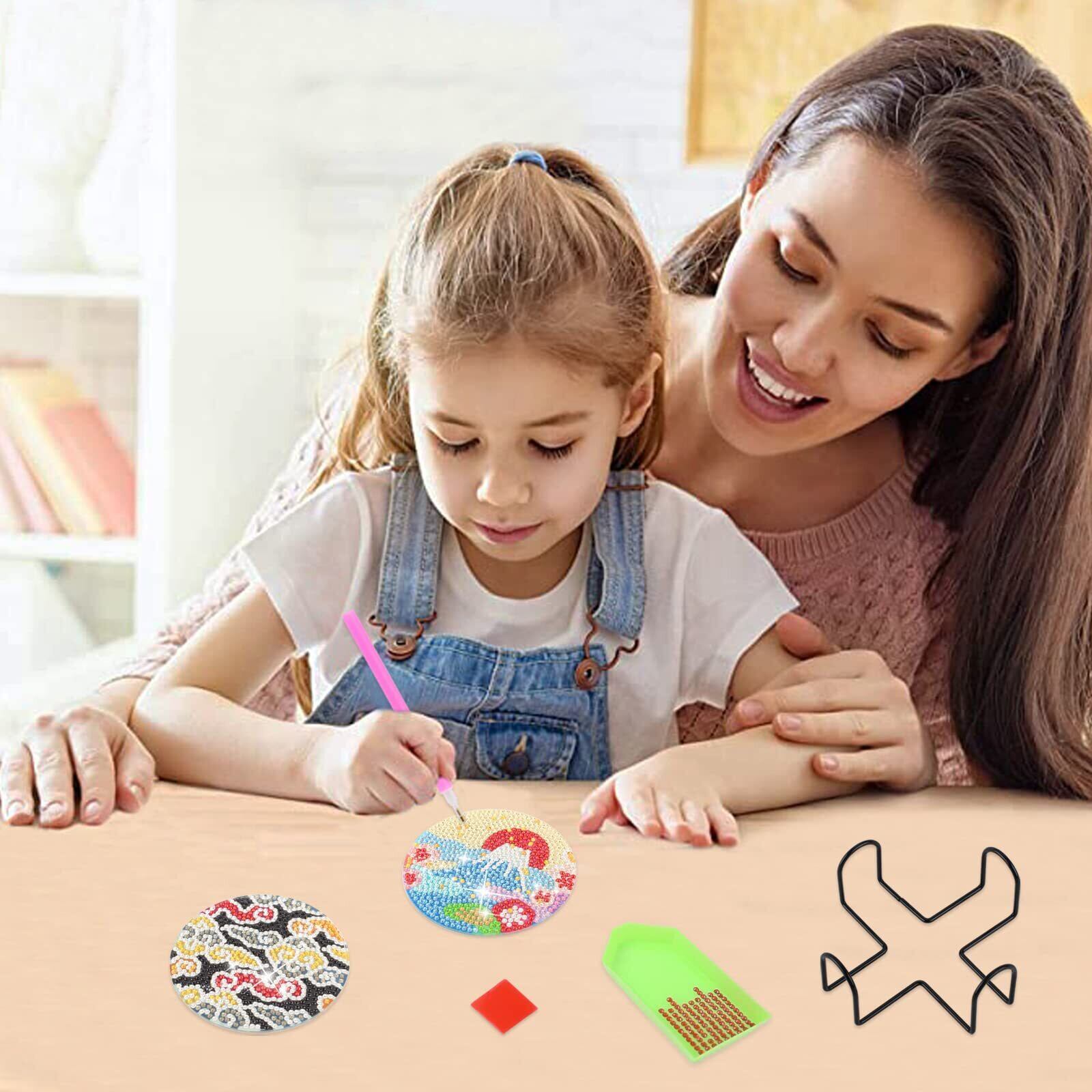 【多用途】DIYダイヤモンド手作りアートコースターは、ストレスを軽減し、気分を調整し、自信と忍耐力を高めて、忍耐力を訓練するのに役立ちます。子供の実践能力の育成に役立ています。高齢者が退屈から身をそらすのを助けることができます。