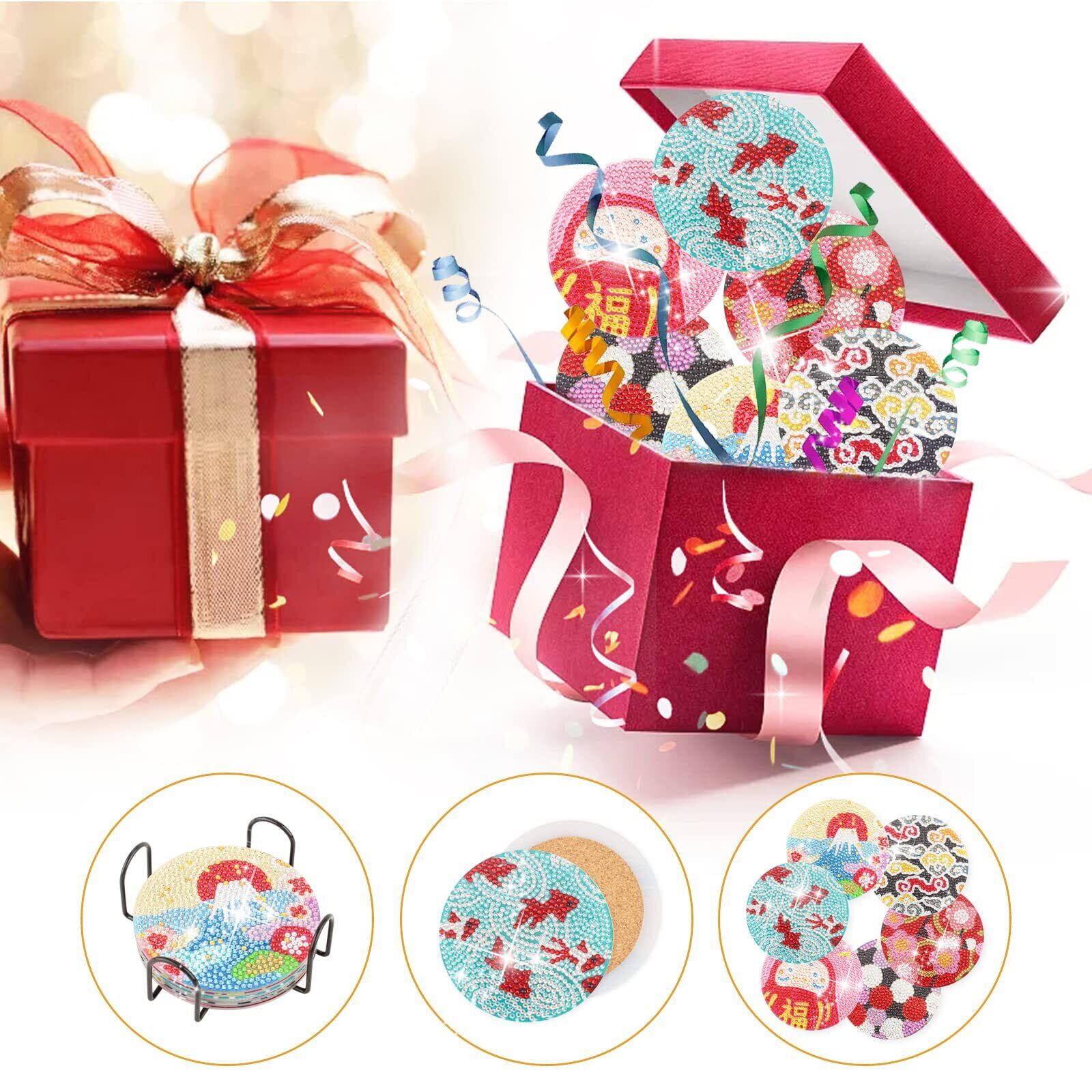 【新春セール】LUCKYBEE ダイヤモンドアートキット 和風ペインティング塗装コースター 6個セット ホルダー付き DIY 5Dアートキット ダイアモンドビーズ 滑り止めコースター 樹脂 手作り 初心者、子供、大人用 アートクラフト用品 | allstore2