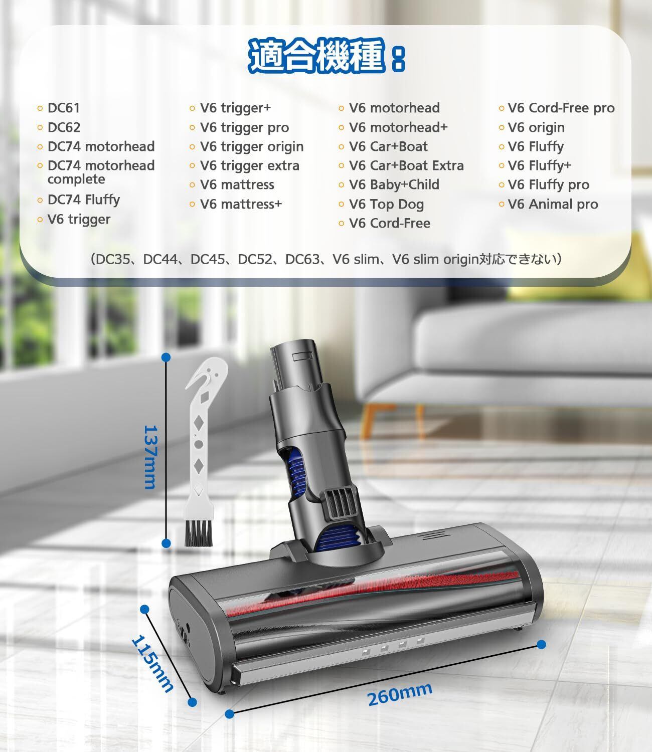 【対応機種】: DC61、DC62、DC74 motorhead、DC74 motorhead complete、DC74 Fluffy、V6 trigger、V6 trigger+、V6 trigger pro、V6 trigger origin、V6 trigger extra、V6 mattress、V6 mattress+、V6 motorhead、V6 motorhead+、V6 Car+Boat、V6 Car+Boat Extra、V6 Baby+Child、V6 Top Dog、V6 Cord-Free、V6 Cord-Free pro、V6 origin、V6 Fluffy、V6 Fluffy+、V6 Fluffy pro、V6 Animal pro モーターヘッド(非対応:V6 slim、V6 slim origin、DC35、DC44、DC45、DC52、DC63)※その他の機種は非対応になりますのでご注意ください。