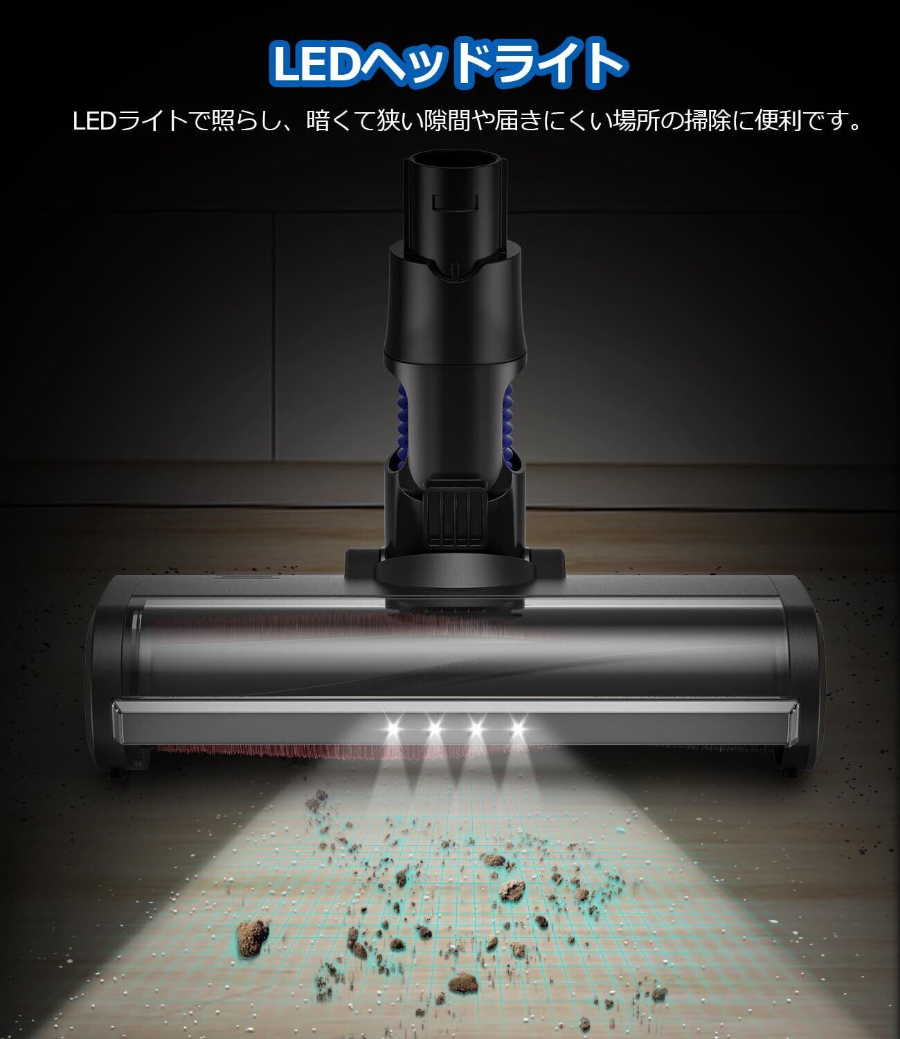 【カーペット向け掃除機 ヘッド】:掃除機ヘッドは、ナイロン製のブラシとカーボンファイバーブラシの組み合わせ。ナイロン製のブラシがカーペットの繊維の奥深くまで入り込み、ホコリや毛をかき出します。また、柔らかいカーボンファイバーブラシが静電気を抑え、繊維にくっついた細かいホコリまで掃除します。