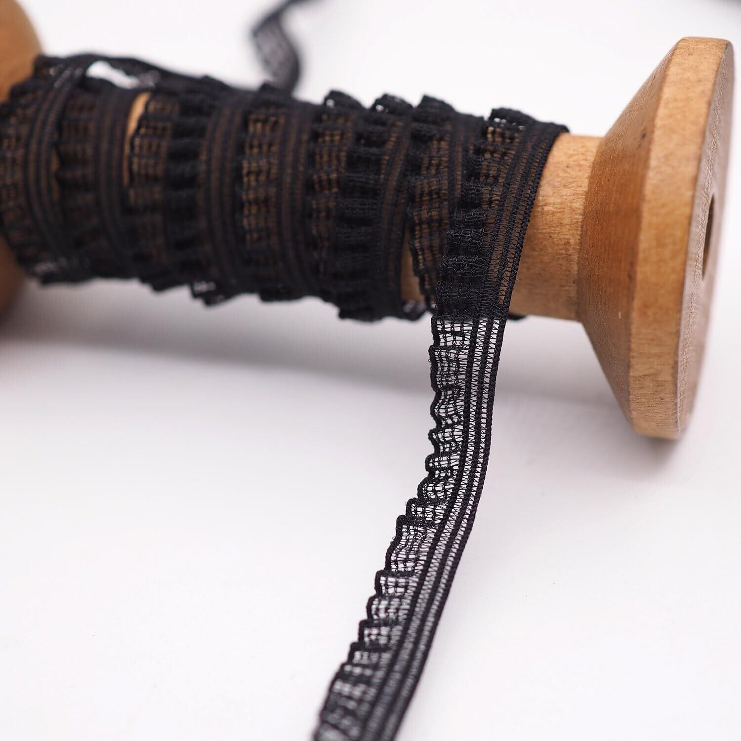 10m 極狭のフリルレース 弾力性のレース DIY補助材料 誕生日 クリスマス ギフト 装飾材料 縫製素材 人形飾(ブラック/クリア,幅6mm)