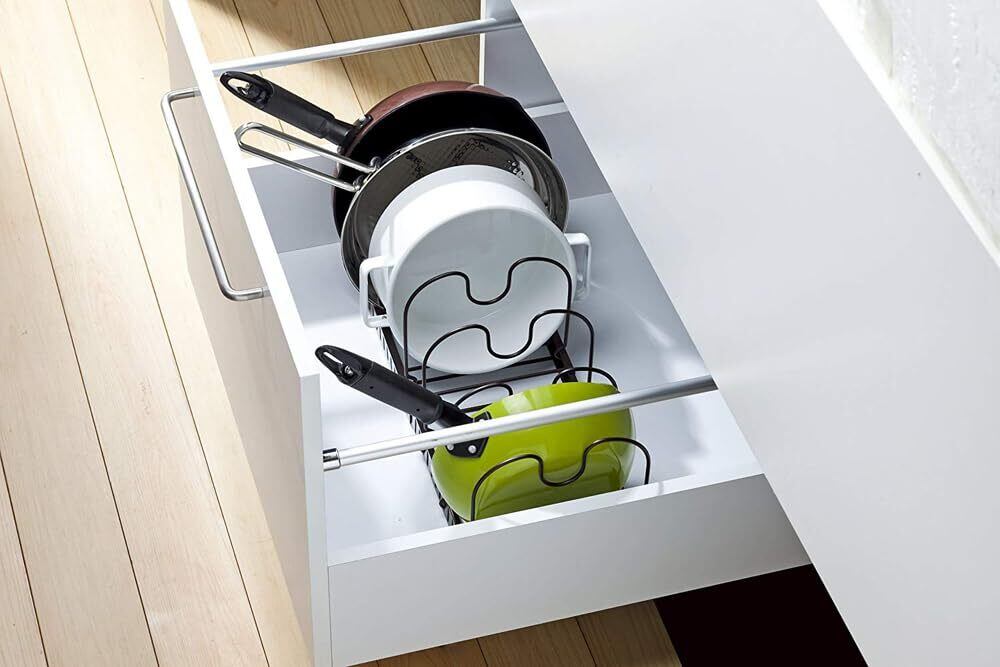 【特長】・お手持ちのフライパン/鍋/蓋などが整然と収納できます。