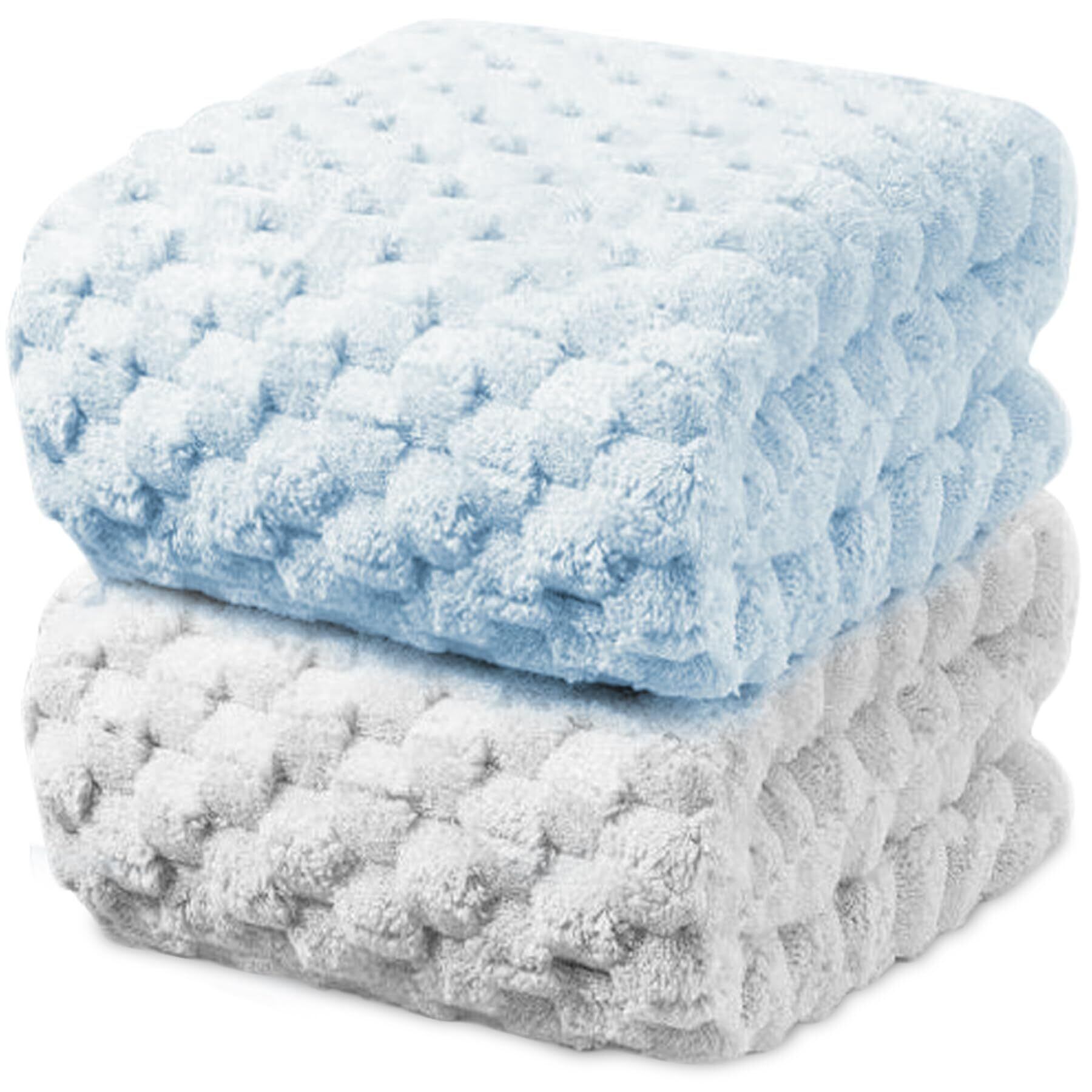 AYO バスタオル 2色2枚セット 60*120cm マイクロファイバー 立体ポコポコ特殊織り ホテル仕様 ふかふか 高吸水 耐久性 毛羽落ち少ない(ライトグレー+ベビーブルー)