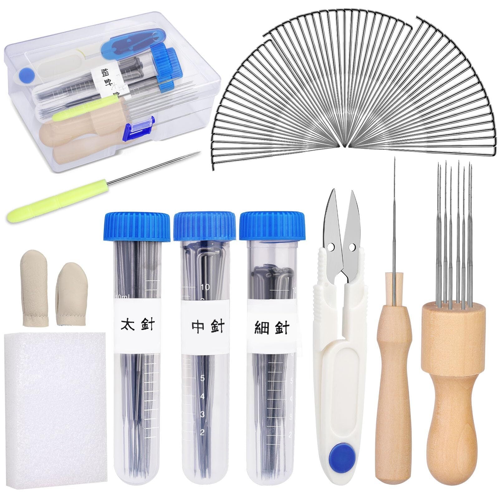 フェルトニードルキット: 3種類のサイズの羊毛フェルト針:20×9センチ、20×8.6センチ、20×7.8センチ。要件に応じたさまざまなオプション。太い針と仕上げ用の細い針がフェルトニードルセットに入っているので、細かい作品作りにも対応できます。