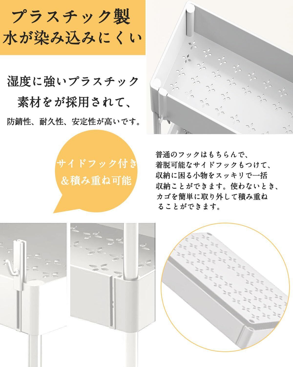 【お手入れ・組み立て簡単】底板がメッシュ仕様で通気性が良くて、ホコリも溜まりにくいためお手入れがらくらくです。組立て、解体が簡単なので、引越しの際にも便利で、女性一人でも完成できます。説明書に組み立て図解もあります。お客様のご要望にお応えして、バスケットは3段・4段・5段からお選びいただけるようになりました。さらに、着脱可能なサイドフックもつけて、収納に困る小物をスッキリで一括収納ことができます。使わないとき、カゴを簡単に取り外して積み重ねることができます。