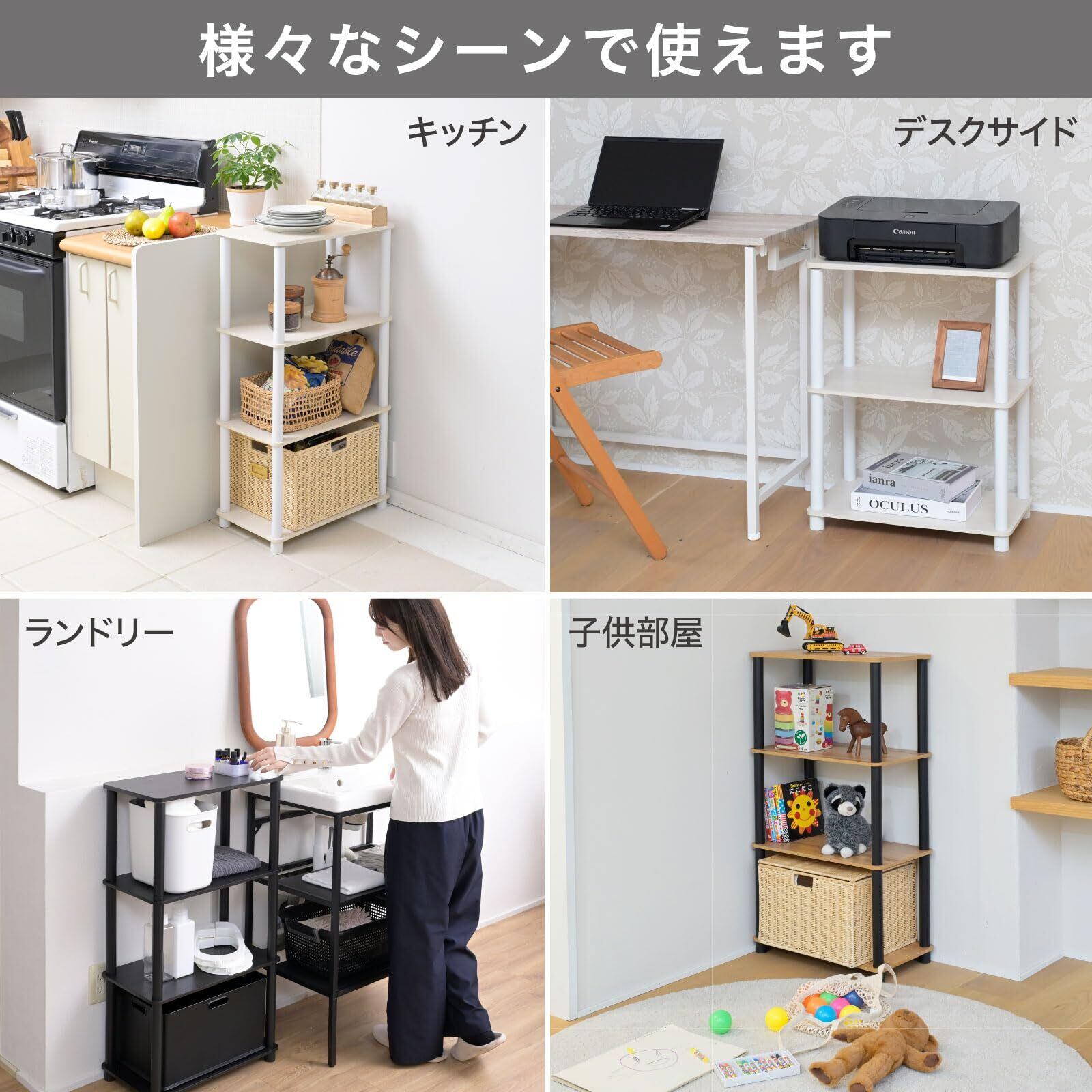 ●サイズ(約) : 幅47×奥行27×高さ92cm●構造部材 : 支柱/ポリエチレン・ポリプロピレン●甲板の表面材 : プリント紙化粧パーティクルボード●耐荷重:全体 32kg(天板8kg、棚板1枚あたり 8kg)●東証プライム(株)山善で扱うすべての山善商品は、自社もしくは第三者機関において、JIS規格に基づいた品質試験を行っております。