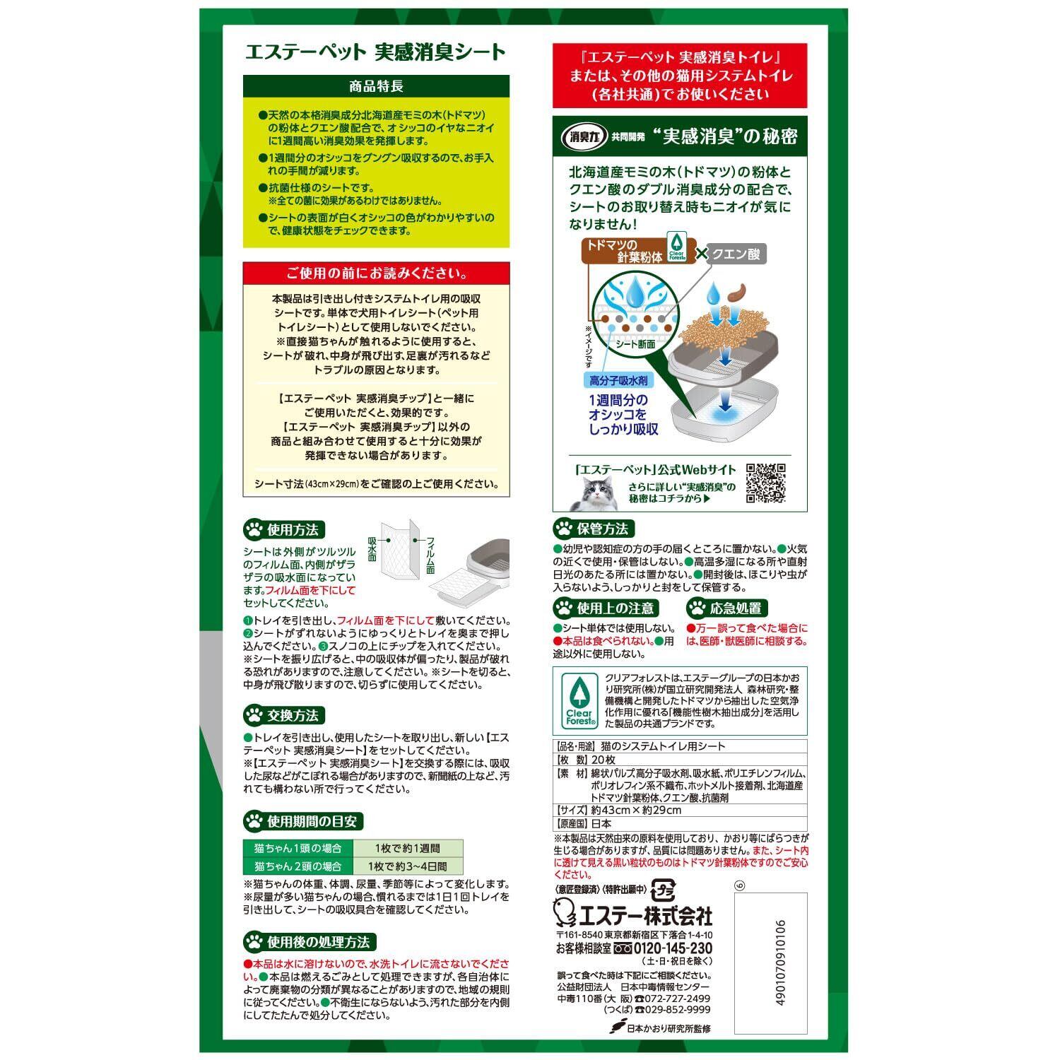 エステーペット 猫用 実感消臭 シート 20枚 [システムトイレ 各社に使える] [消臭力]共同開発 猫 トイレ トイレシート 消臭 日本製 その他 ホワイト