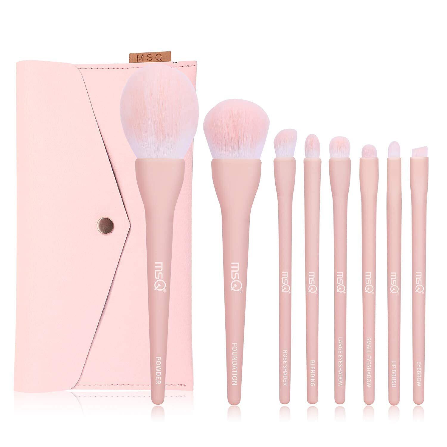 MSQ メイクブラシ 8本 人気 メイク 筆 アイシャドウブラシ 収納ポーチ付き 高級繊維毛 超柔らかい 日常の化粧 携帯便利 敏感肌適用メイクブラシセット ギフトセレクション (ピンク)