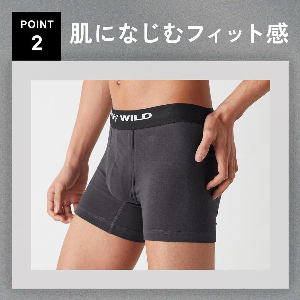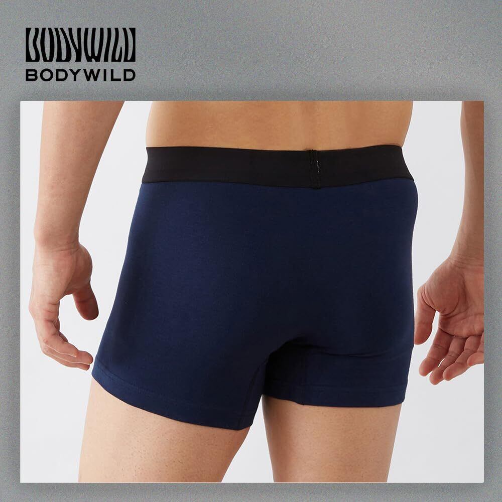 太目のブラックバンドと「BODY WILD」のビッグロゴ! ! 便利な前あきの機能はそのままに、開く部分をスッキリとした形状にした、綿混素材のボクサーブリーフ。