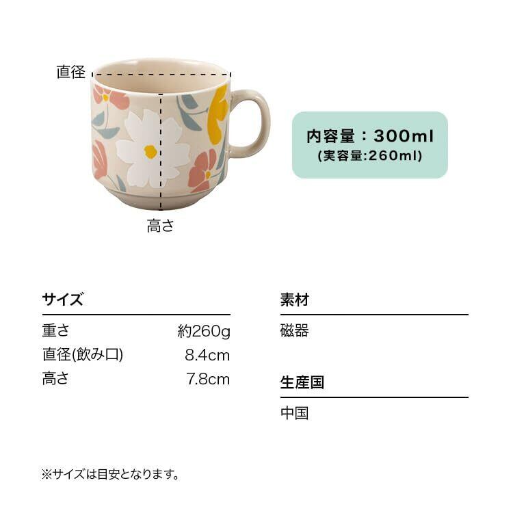 【重ねて収納】レトロな色合いとテキスタイル柄が可愛いスタッキングマグカップ