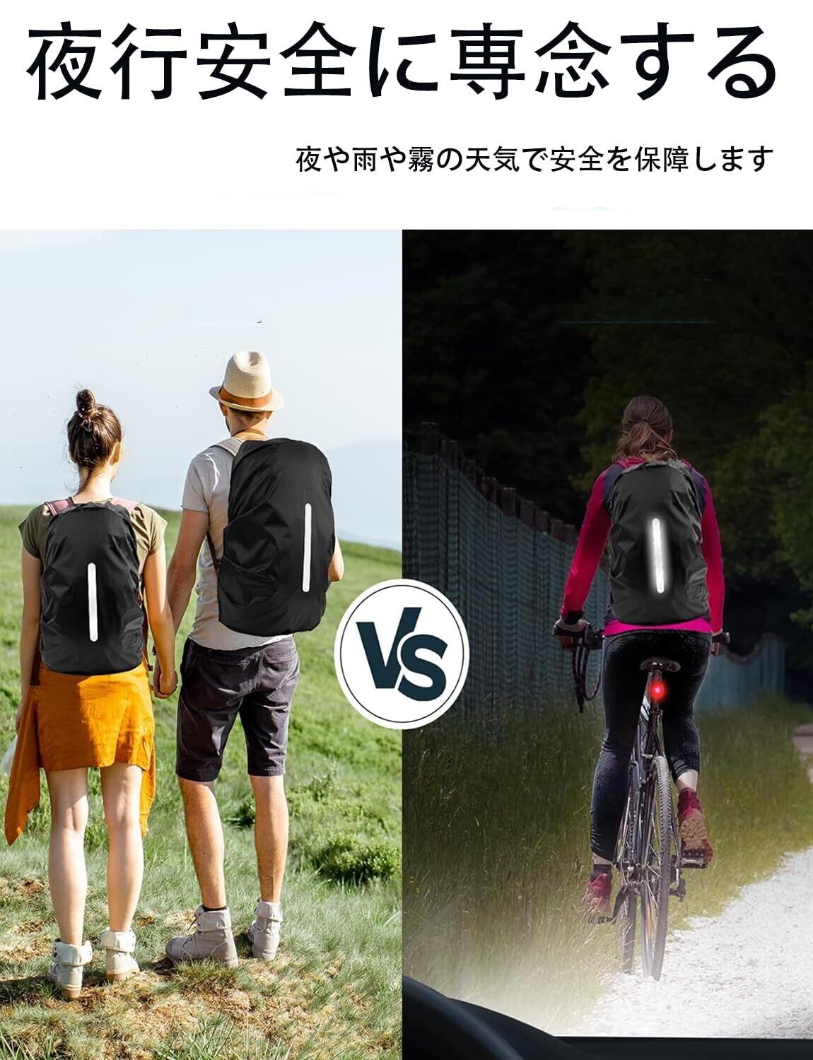 【商品内容】リュックカバー*1, 収納袋付き、簡単でカバーが収納できます。通勤、通学、旅行、アウトドアで携帯便利です。サイズ:S;20-30L、 M:30-40L 、L:40-50L 、XL:50-65L、XXL:65-75L。