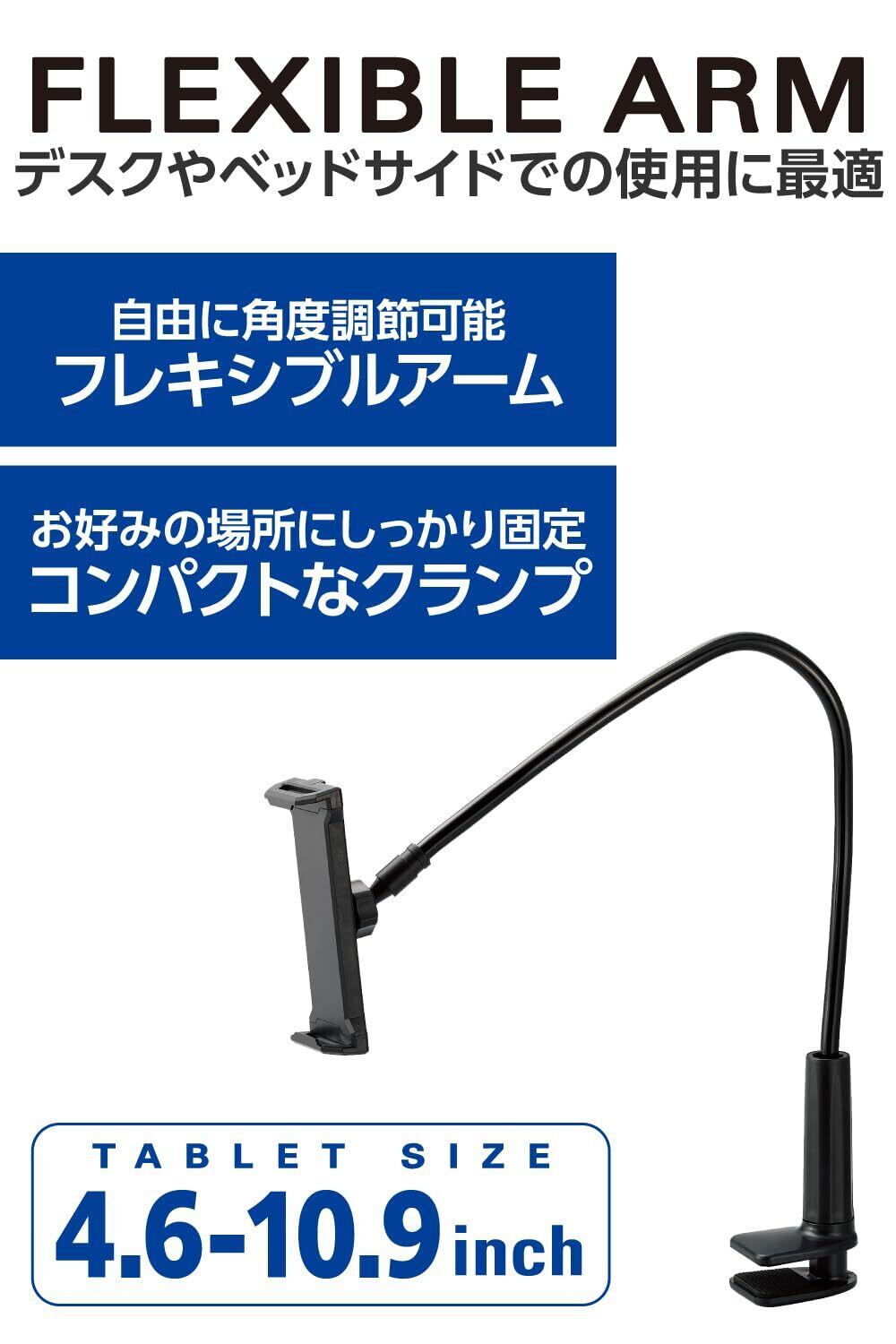 エレコム タブレット アーム スタンド 寝ながら スマホ iPad 固定 【4.6インチ~10.9インチ対応】 360度回転 自由自在に固定可能 約12mmの太いアームでしっかりキープ TBWDSLARMBK