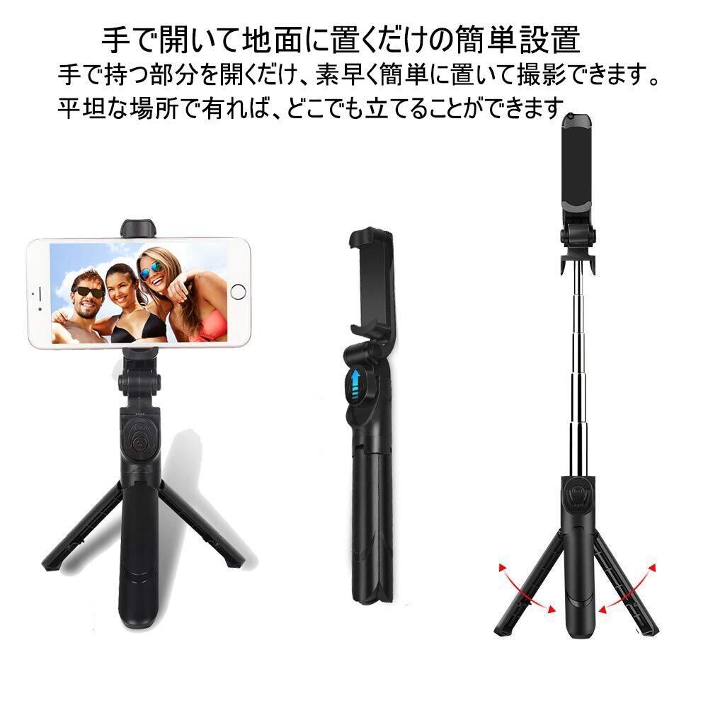 自撮り棒 bluetooth 無線 シャッターボタン付き スマホ セルカ棒 三脚/一脚兼用 コンパクト 軽量 AndroidやiPhone対応 他のほとんどのスマホにも対応可能 携帯便利 リモコン付き (黒)