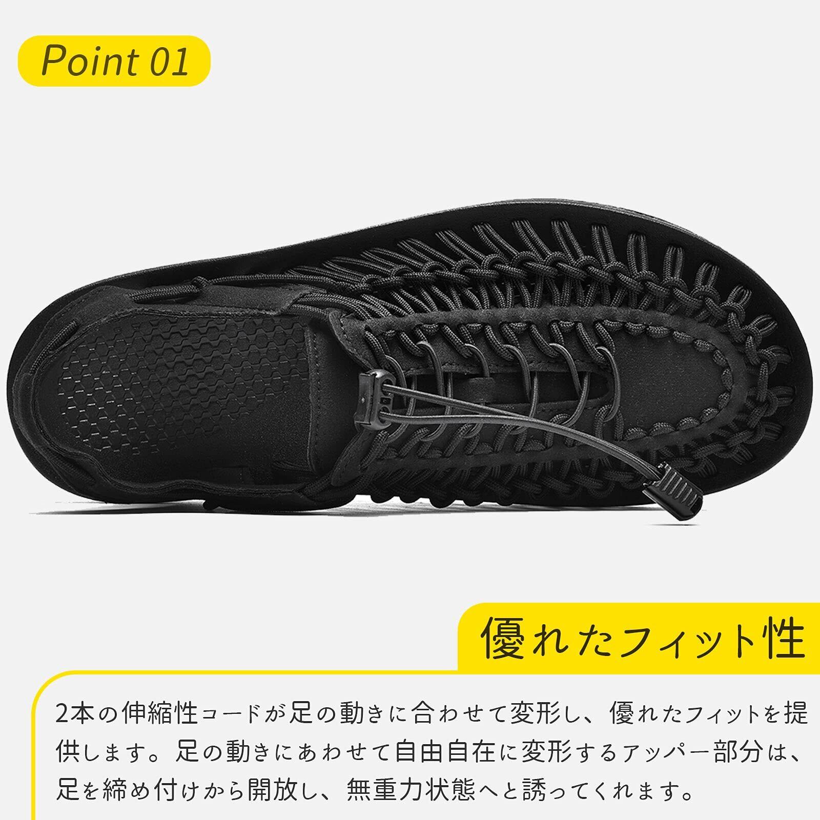 【通気性・吸汗性が抜群】表面は弾性ポリエステルので、質感と長持ちを両立できます。十分に柔軟で、曲がりやすいですから、気性と吸汗性を重視した、透かし彫りのアッパーは排水でき、靴の中にいつも快適です。涼しい着心地を感じられるようにしています。