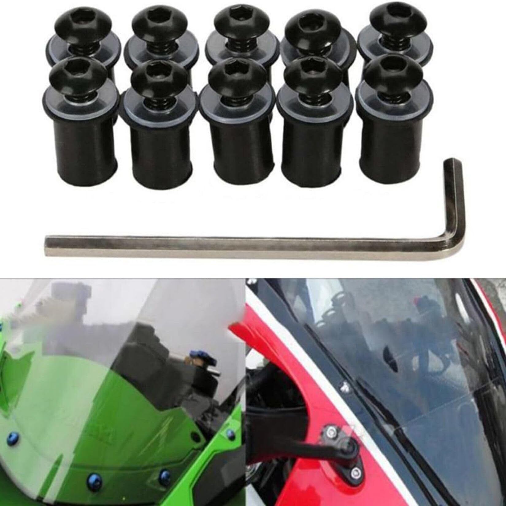 スクリーンボルト ウェルナット m5 10個セット 5mm ボルト 六角レンチ 付き ボルト バイク の ウィンドシールド の固定 カヤック オートバイ バイク用 (黒色(10個))