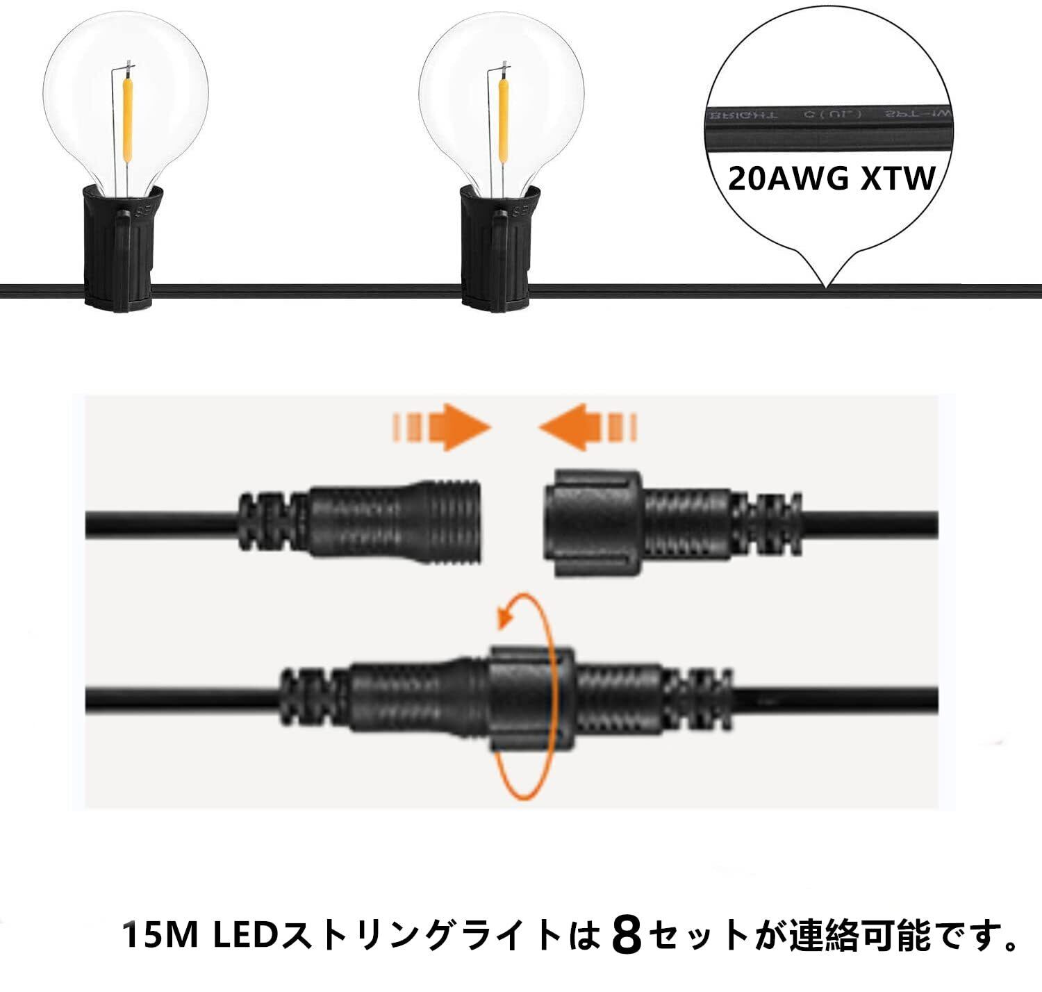 【安全&破損しにくい】:電球は環境に優しく破損しにくいPC素材で作られており、耐久性に優れるストリングライトです。品質と安全性は日本の国内基準に達しているので、安心してご利用頂けます。