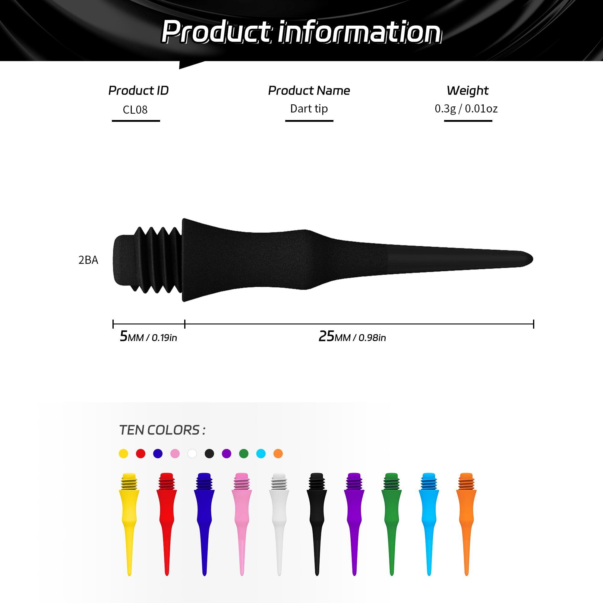 【特価商品】CyeeLifeダーツチッププラスチック、500枚、2 BAライン、特に安定していて、耐久性があり、ダーツの矢印は10色あります