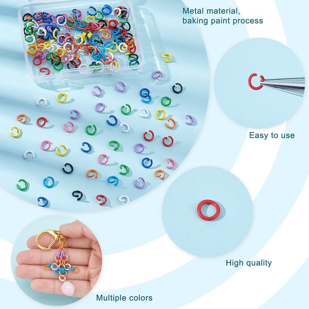 6mmのオープンリング: 直径約6mm、内径約4mmのオープンリングです。 1つのリングが必要な場合に、コネクターとして広く使用されています。 各色20個ずつ、計200個入りで、クラフトやジュエリー作りのニーズを十分に満たします。