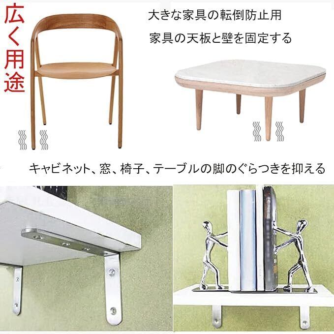 【多機能の棚受け金具】タンス、キャビネット、窓、椅子などさまざまな緩みのある家具を補修に活躍します。戸棚や壁に層板を新たに取り付けるたり補強するためにも適用。地震に備えて家具の固定に欠かさない部品です。