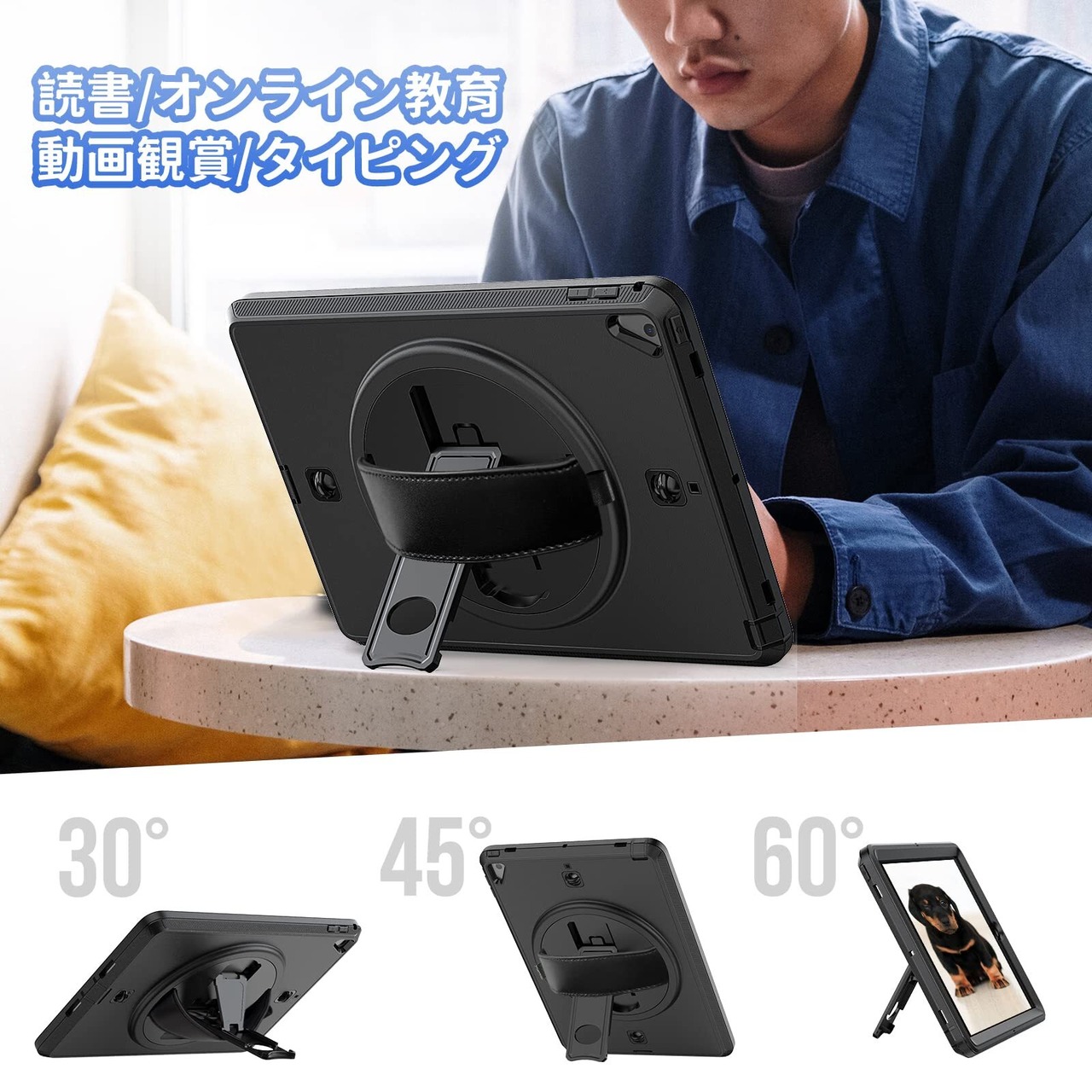 【在庫セール】Timecity iPad 第5/6世代 (9.7インチ) ケース iPad Air2 ケース 耐衝撃 スリム 三層保護 ハンドストラップ 肩紐 ペンホルダー 360度回転 スタンド付き 保護フィルム 防塵デザイン 使い勝手 子ども 屋内/アウトドア (ブラック)(適格請求書発行可能) | allstore2