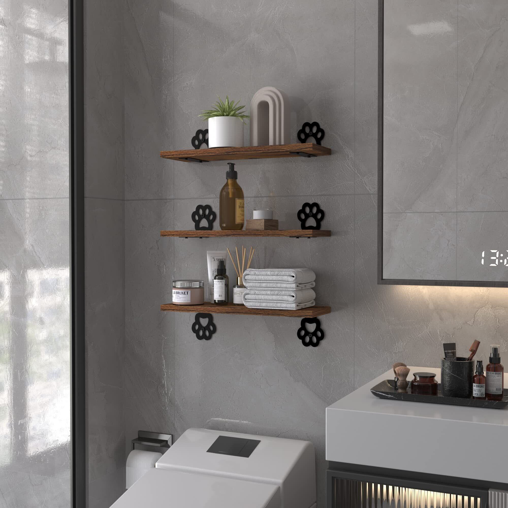 愛らしい「爪跡デザイン」3点セット:ペットとの絆を形にしたキュートな壁掛け棚!6個の鉄製「爪印パーツ」+3枚の棚板で自由にアレンジ可能。黒のモダンなデザインがキッチン・リビング・バスルームにほのかな温もりを添えます。