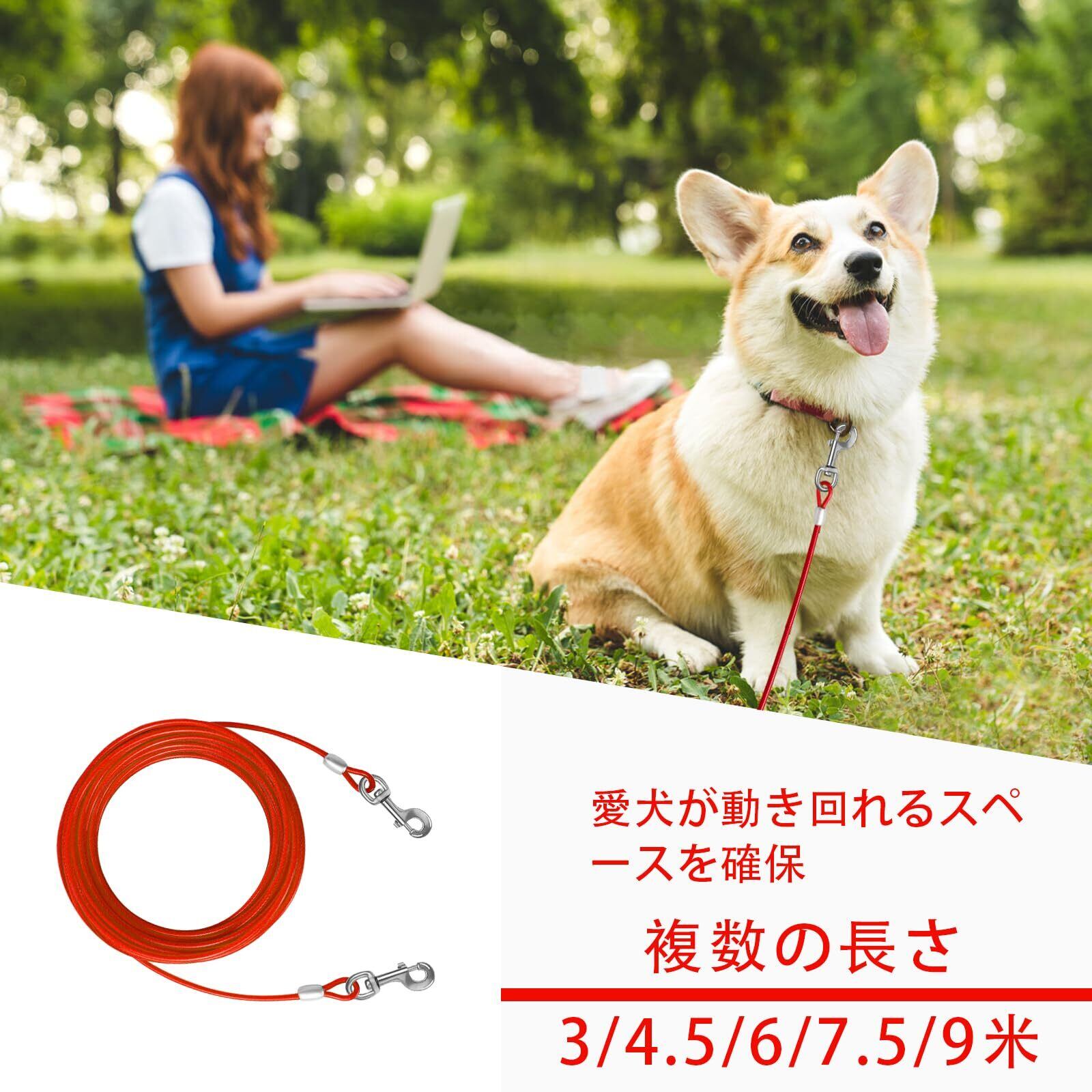 ドッグアンカー 犬 鎖 3/4.5/6/7.5/9M 係留 ケーブル ワイヤーリード 60KG 犬 ケーブル ワイヤーロープ庭用リード
